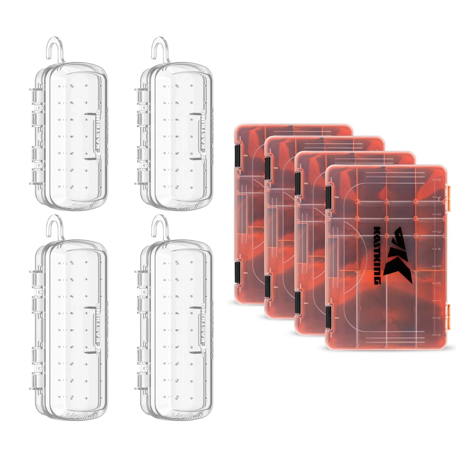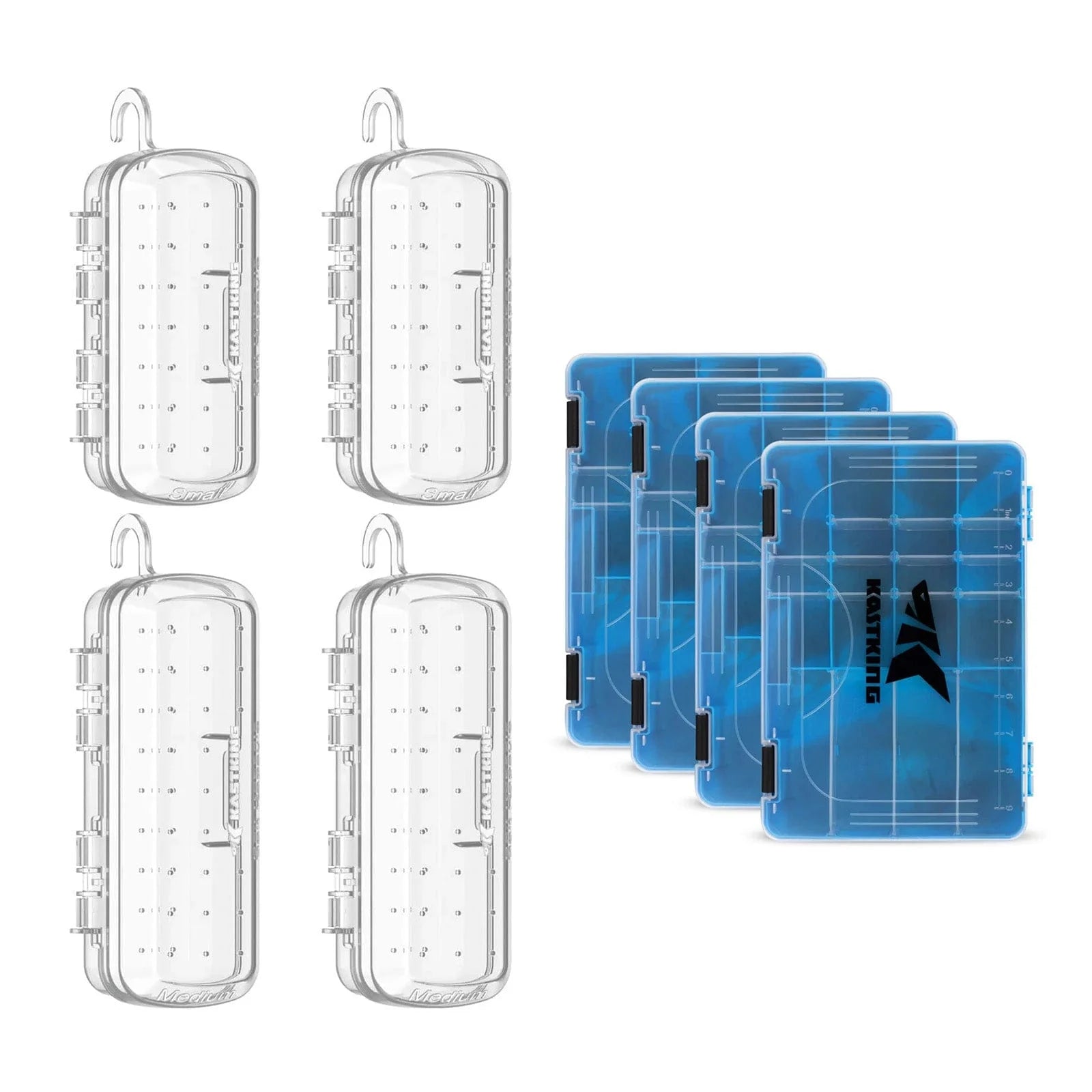 The KastKing fishing tackle box boasts heavy-duty construction, guaranteeing maximum durability and impact resistance, making it the perfect choice for storing lures and other terminal tackle. Its robust design includes sturdy molded latches that keep your contents securely in place. The surface and bottom of the plastic tackle box are designed with anti-slip texture lines for added convenience and security.