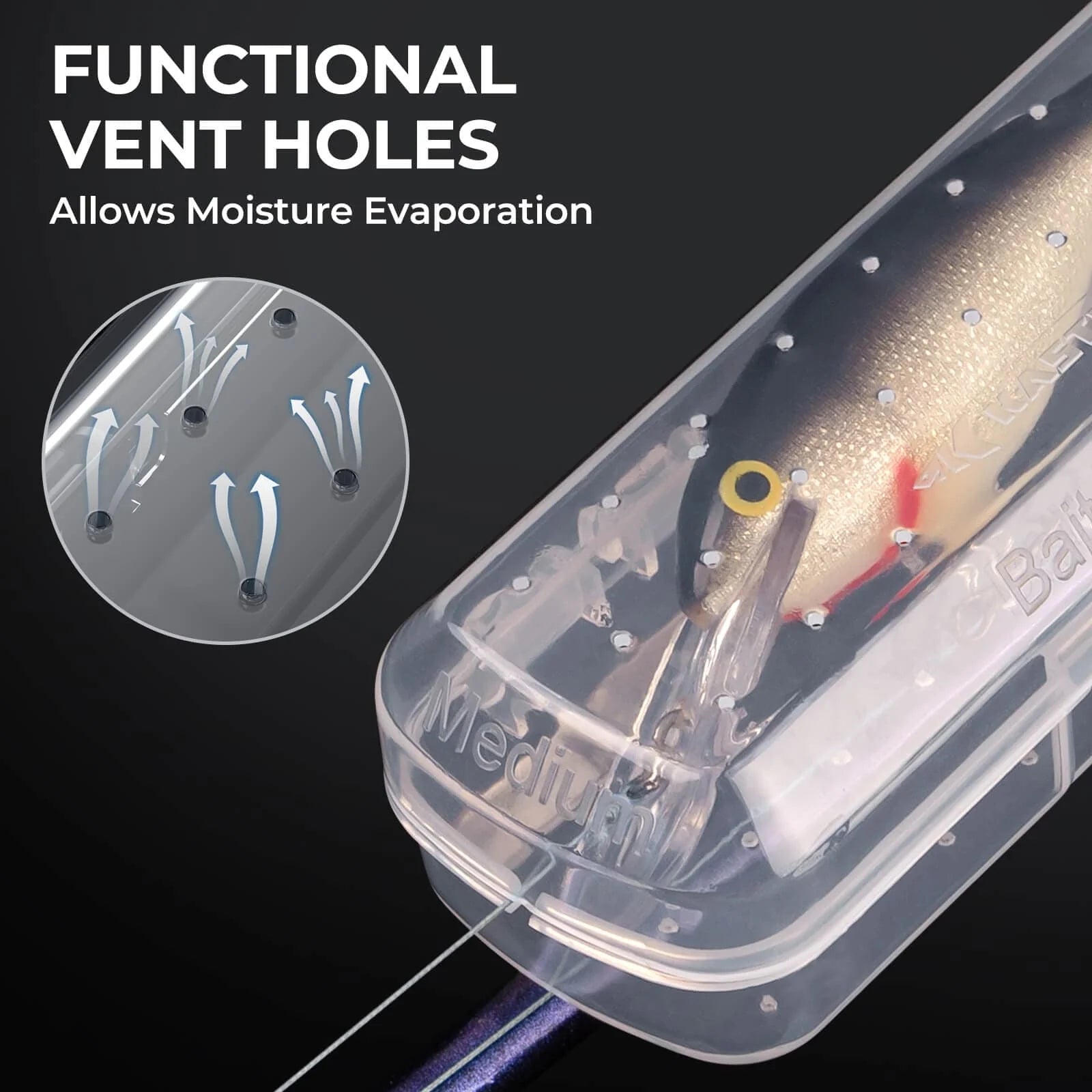 The innovative KastKing Bait Kapsule features a durable polypropylene molded shell that safeguards your baits and lures, ensuring they stay in prime condition while stopping hooks from getting caught on carpet, clothing, hands and even pets.