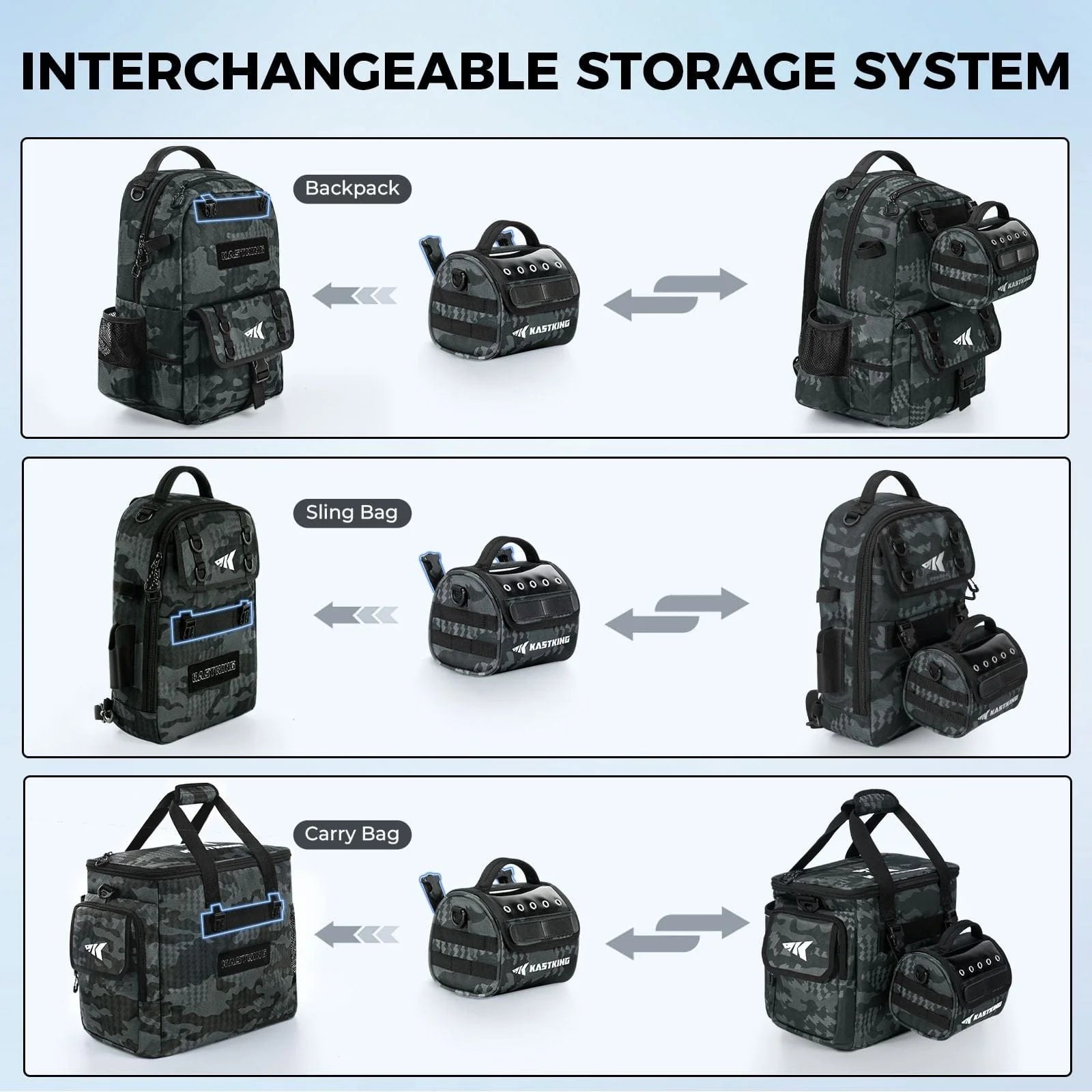 It integrates seamlessly with other BaitSpace bags, including the backpack, sling bag, and tackle bag, providing a modular system tailored for anglers.