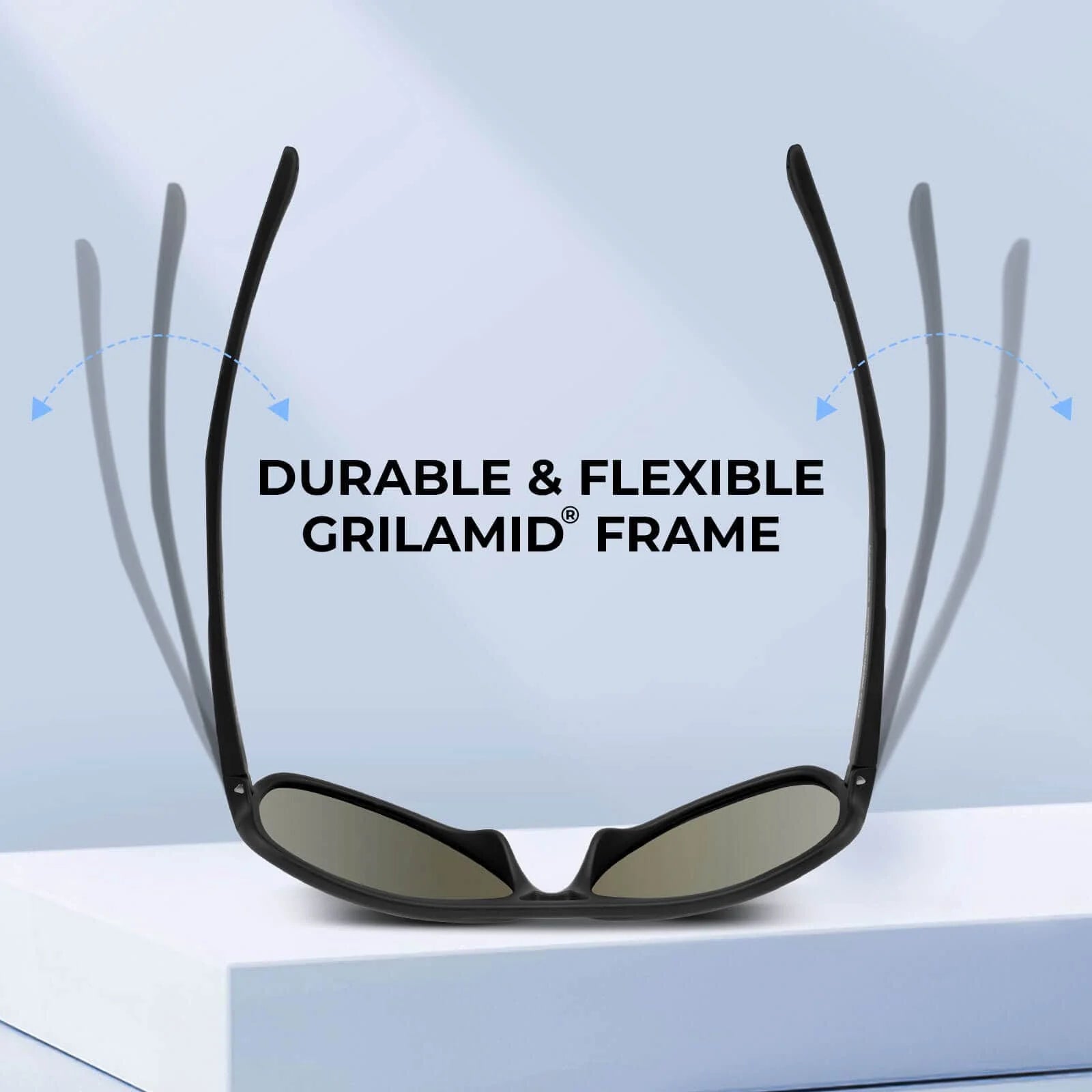 Made from Grilamid material used in military and medical applications, our frames are lightweight, flexible, and heat and UV resistant, ensuring durability and comfort throughout your adventures.