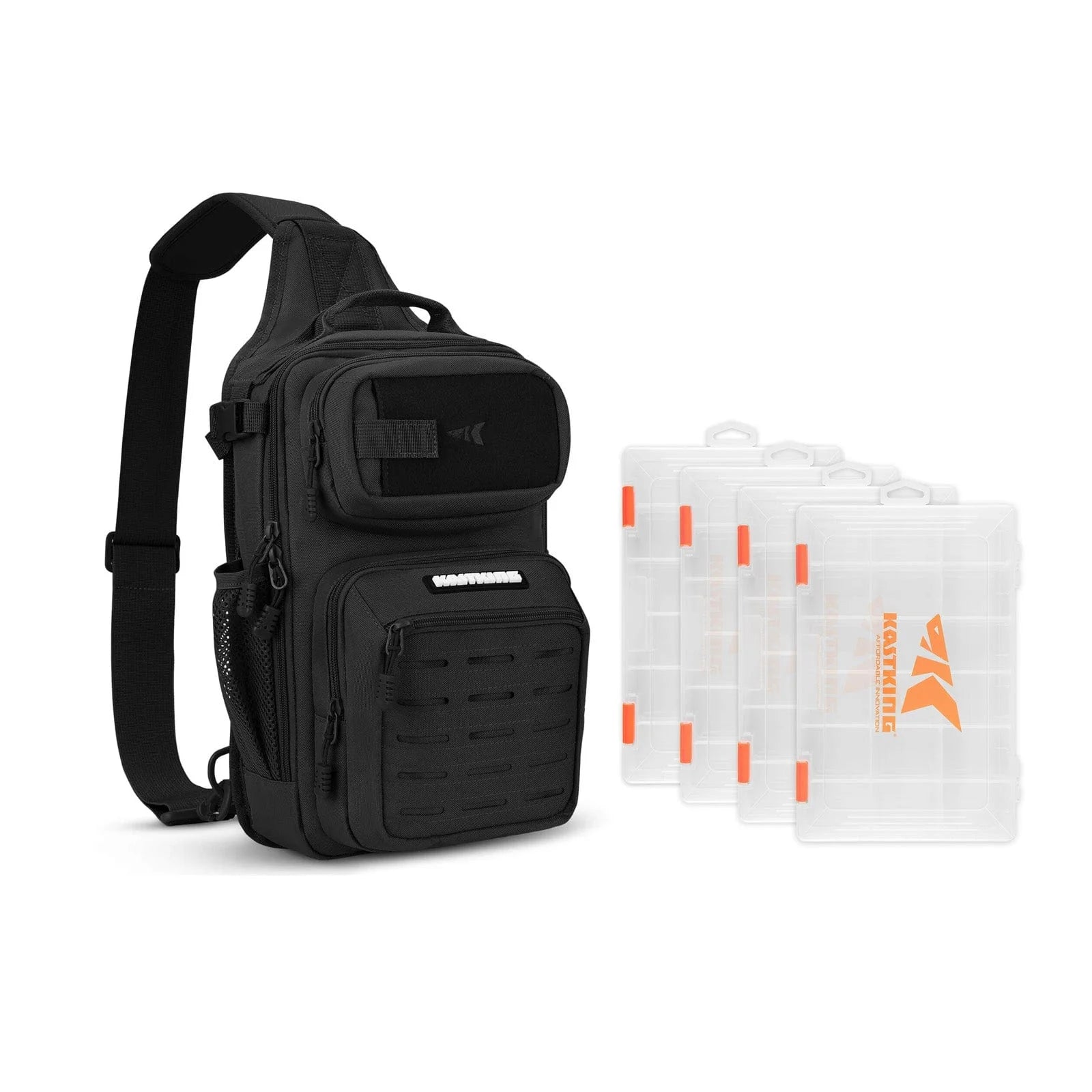 KastKing BlowBak Tactical Fishing Sling Tackle Storage Bag and Utility Tackle Boxes Combo