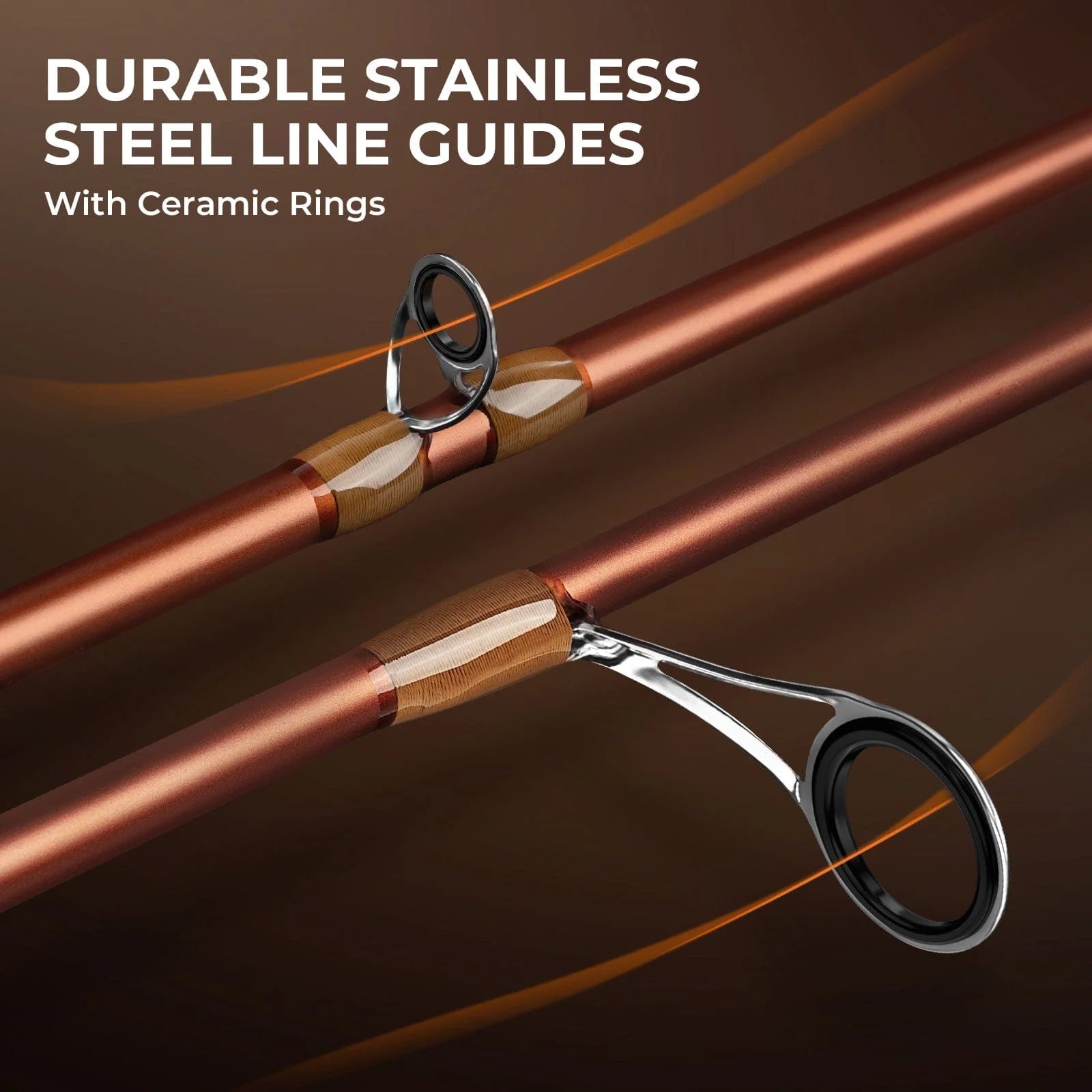 The stainless steel line guides are equipped with aluminum oxide rings, offering exceptional durability and sensitivity. Perfectly suited for monofilament, fluorocarbon, and braided lines, they ensure smooth performance and reduce friction for effortless casting.
