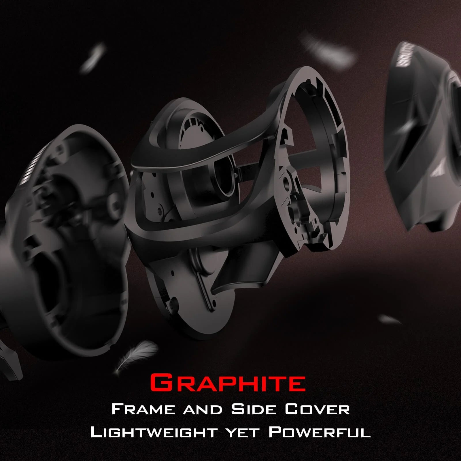 Brutus features one-piece rigid graphite frame, lightweight graphite side plates that can deliver reliable performance and durability for long life. KastKing Brutus has a CNC aluminum U-Shaped spool for more line capacity, a solid aluminum handle for strength, and non-slip rubber paddles for all day fishing comfort.