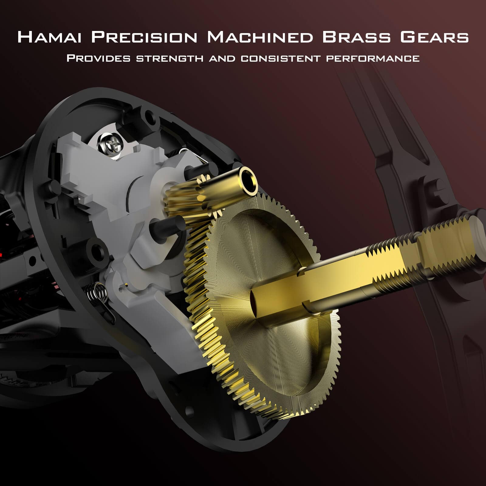 KastKing’s new Brutus casting reels are equipped with an extra-hard stainless steel main shaft, Hamai precision machined brass gears for strength and durability. Combine those high-end features with a three non asbestos drag washers that delivers a fishing stopping 17.6 lbs of drag.