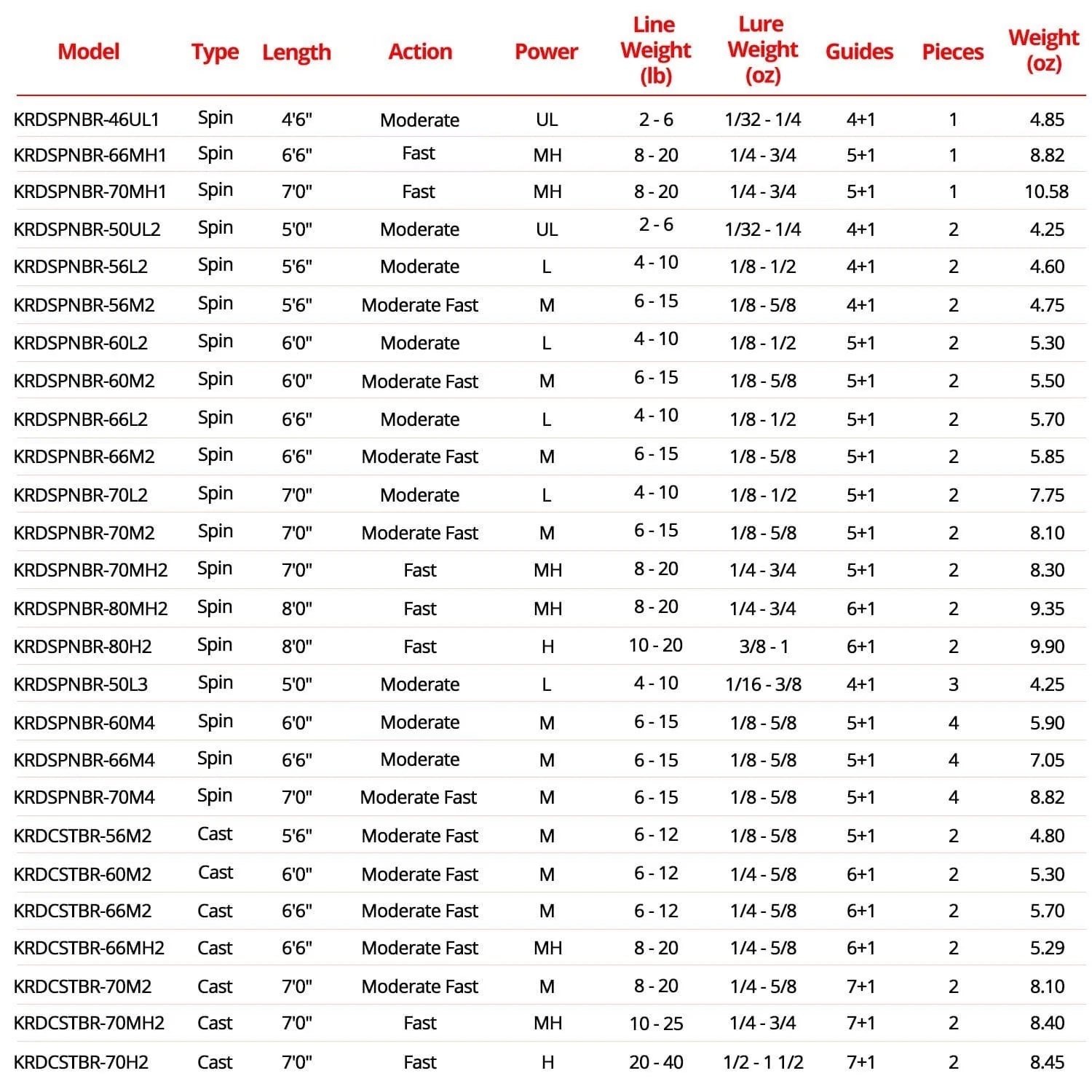 The KastKing Brutus fishing rods are available in over 20 combinations of power, action, length and number of pieces. There's a Brutus rod designed for almost any freshwater or saltwater fishing adventure. Use it as a bass fishing rod, walleye fishing rod, salmon fishing rod, or catfishing rod. There are 3 & 4-pc models that make great travel or pack rods so you are never without an easy to pack travel rod.