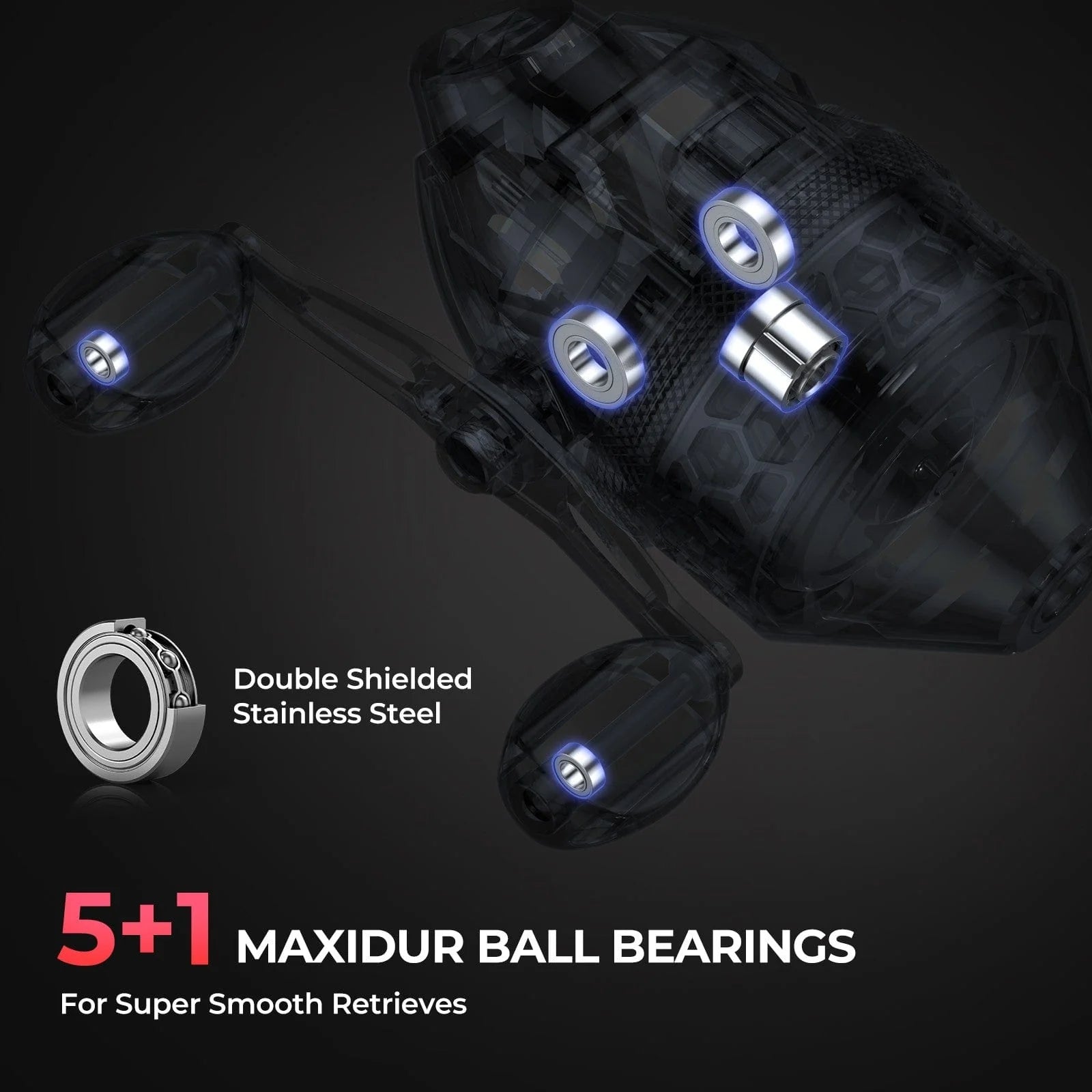 The SpinCast reel includes 5+1 MaxiDur double-shielded stainless steel ball bearings, offering consistent and reliable performance.