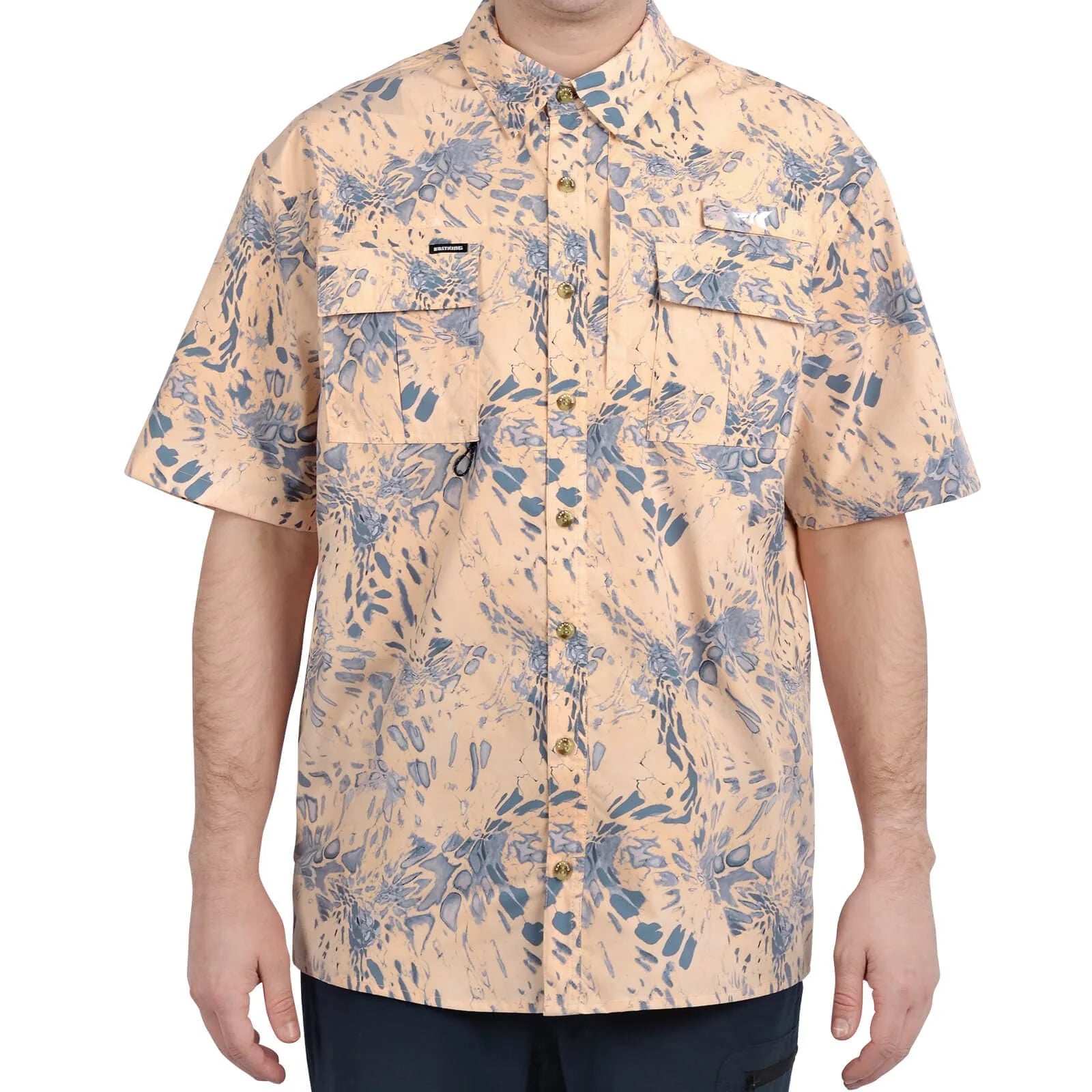 UPF 50+ SUN PROTECTION: KastKing short sleeve fishing shirts for men to protect you from harmful UV sun rays. This men's short sleeve shirt features a standup Solar Guard collar that shades your neck from sunburn and helps keep you cool.