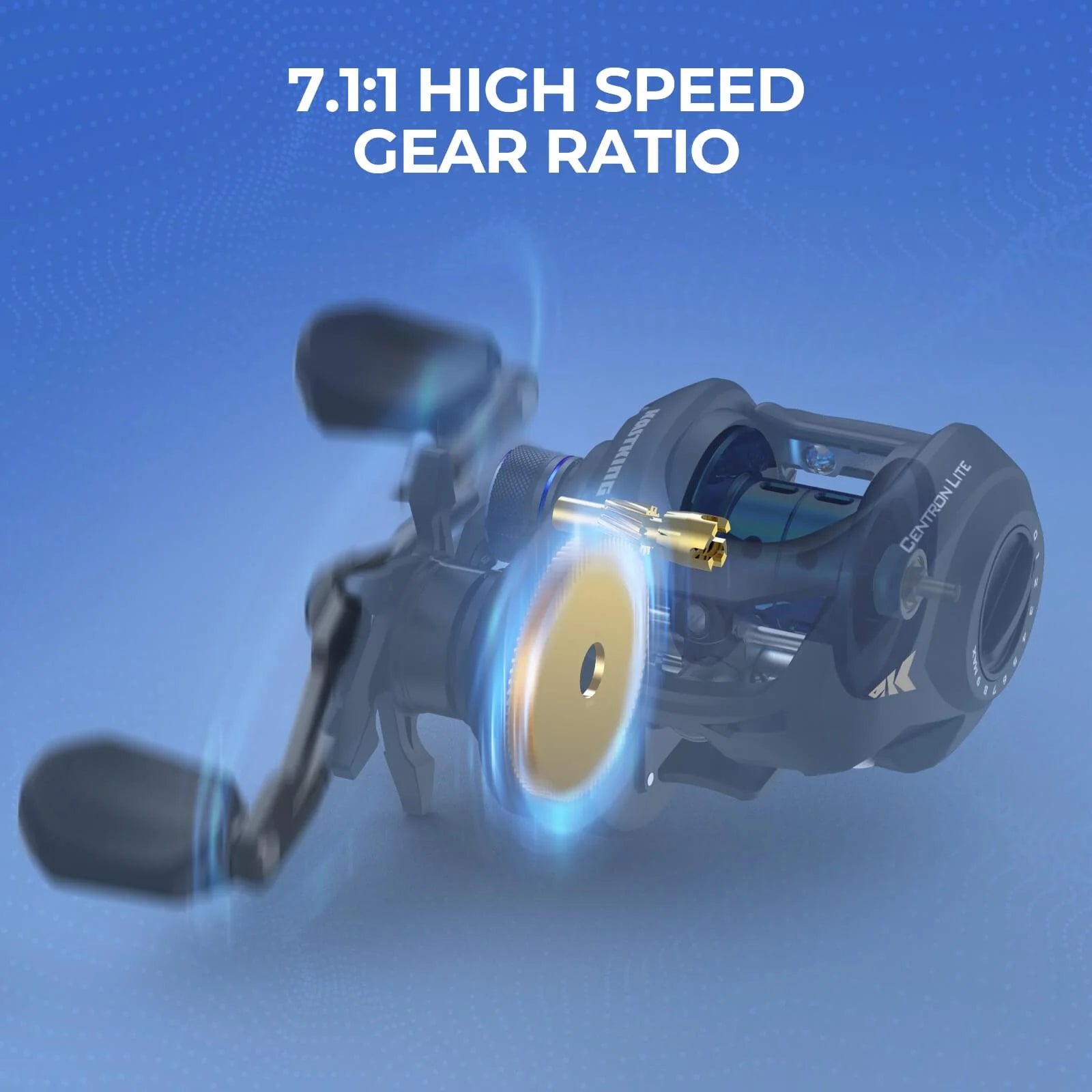 The KastKing Centron baitcaster features a 7.1:1 high speed gear ratio, 5+1 MaxiDur ball bearings, lightweight and powerful Glass Fiber infused Nylon frame and Brass main & pinion gears & 10-magnet braking system with outside adjustment get the work done with minimal effort.