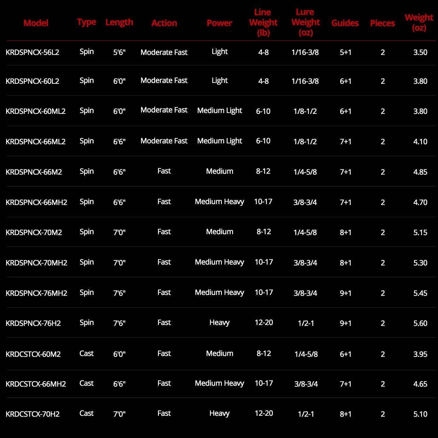 KastKing Crixus fishing rods are available in 20 different power, action, and length combinations. There is a Crixus fishing rod that is perfect for bass fishing, walleye fishing, trout fishing, catfish, and so much more. There are several perfect Crixus models for inshore saltwater fishing. All Crixus fishing rods are constructed in 2-pcs for easy transport and storage. With PTS (Power Transition System) technology, they'll feel just as good as 1-pcs rods.