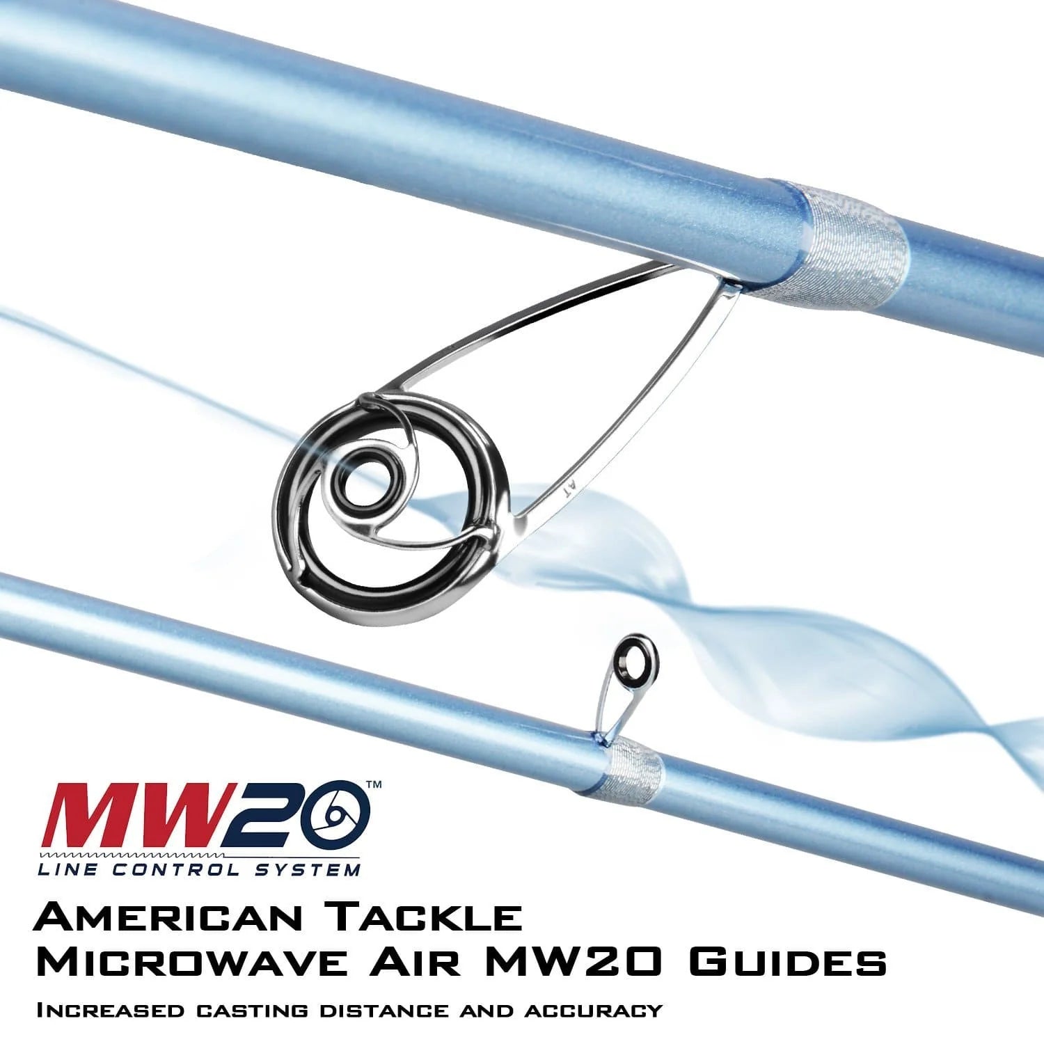 KastKing selected American Tackle Microwave Air MW20 spinning rod guides which increase fishing rod, corrosion resistance, and angler performance while delivering exceptional saltwater performance. American Tackle Microwave Air MW12, double footed casting rod guides are used on the casting model and deliver improved line control, distance and accuracy in casting. All guide wraps are double coated for superior protection.