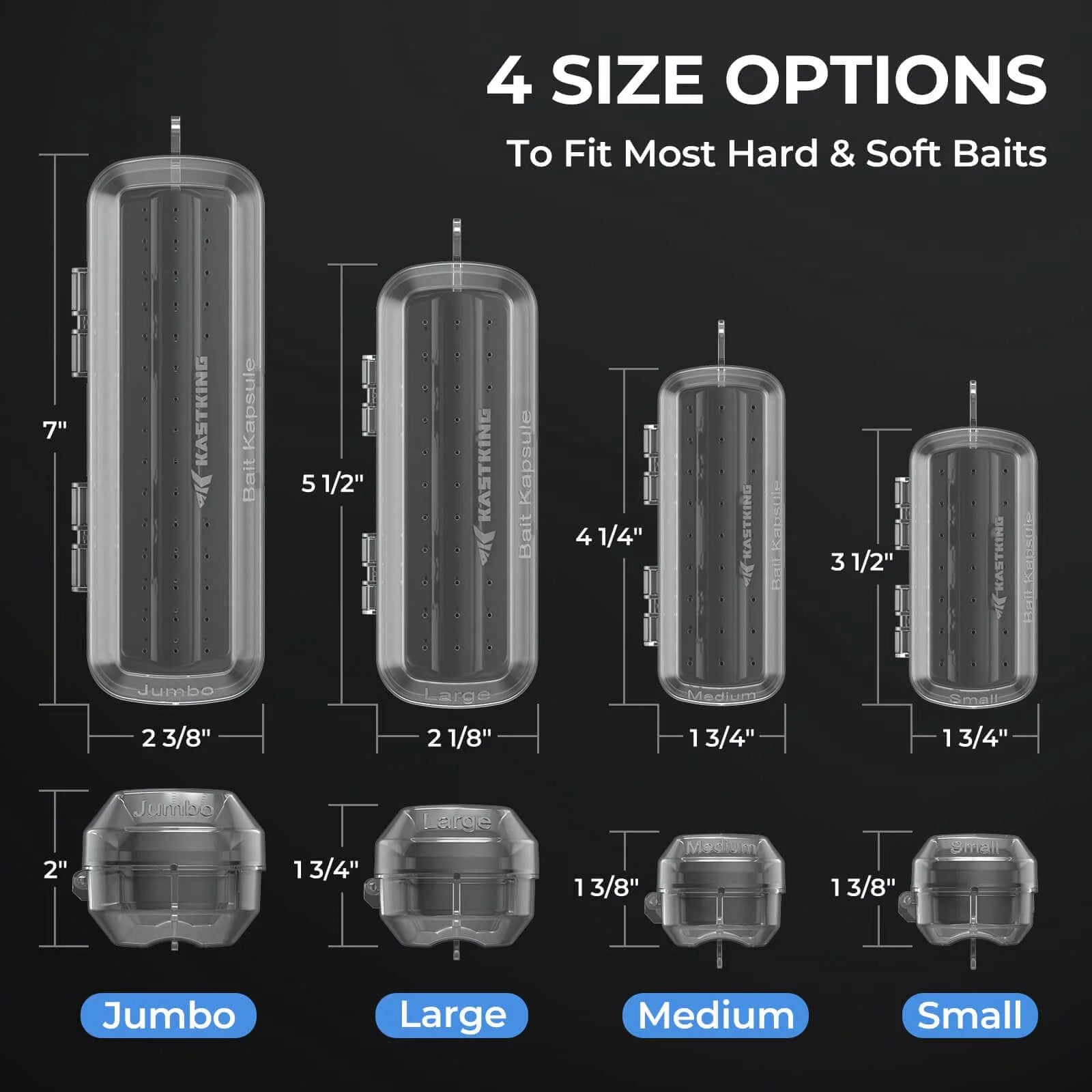 Available in four sizes (Small, Medium, Large, Jumbo) to fit most hard & soft baits. Whether you're fishing in freshwater or saltwater, there's a Kapsule that fits your needs.
