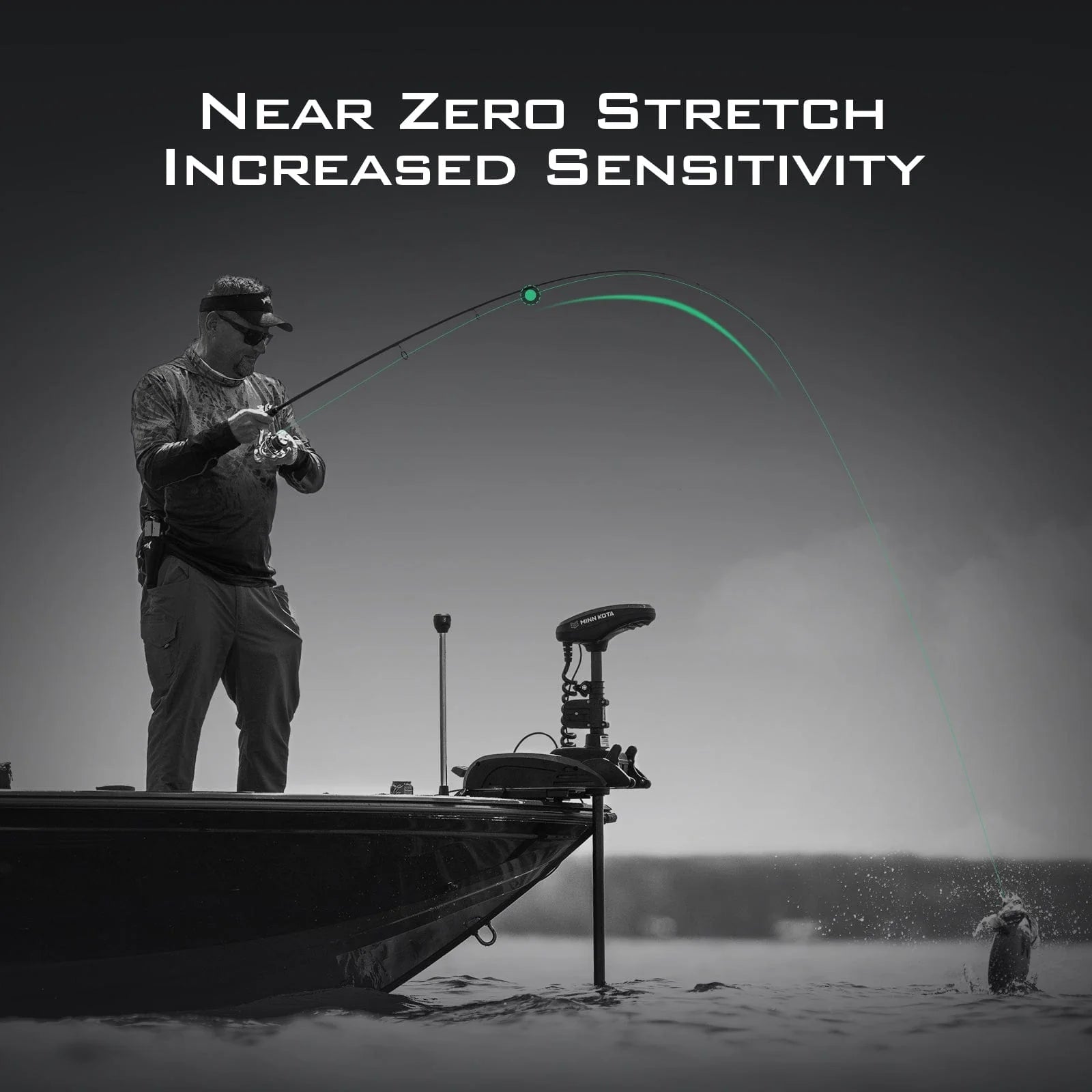 Available in 8, 10, 15, 20, 30, 40, 50, 65, and 80-pound tests in 150- and 300-yard spools. Moss Green, Blue Camo, Slate Grey, Orange, Moss Green, Black, Green Camo and Chartreuse colors enable the perfect color combination for any angling condition.