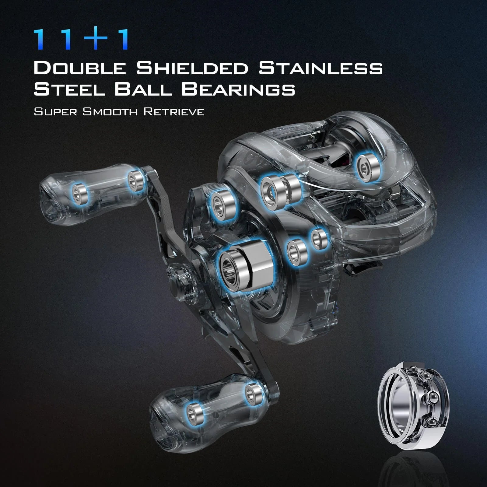 - Revolutionary, patented-design "Auto-adjustment Magnetic Braking System" (AMB) that limits backlashes, can cast farther without worry about backlashes.