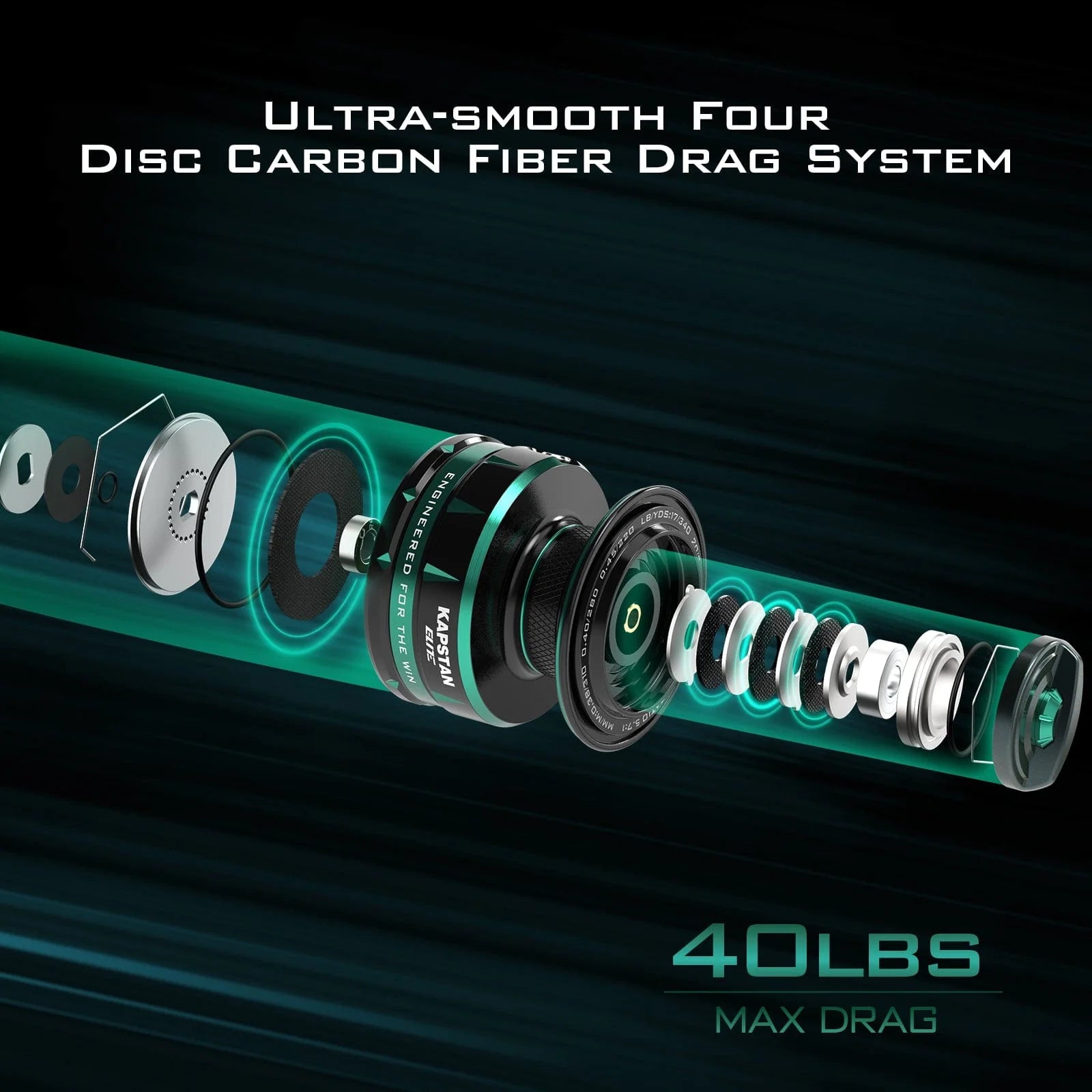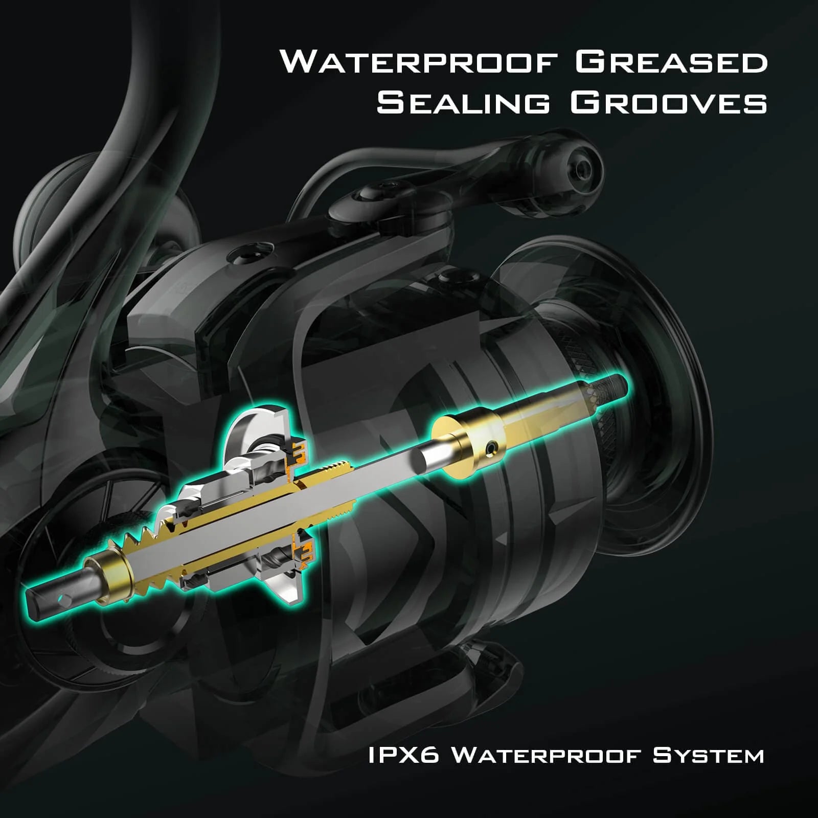 Kapstan Elite High Speed Spinning Reel is KastKing’s highest end 100% Waterproof fishing reel at IPX6 level, with up to 15 EverSeal rubber rings to keep water out of the main gear.