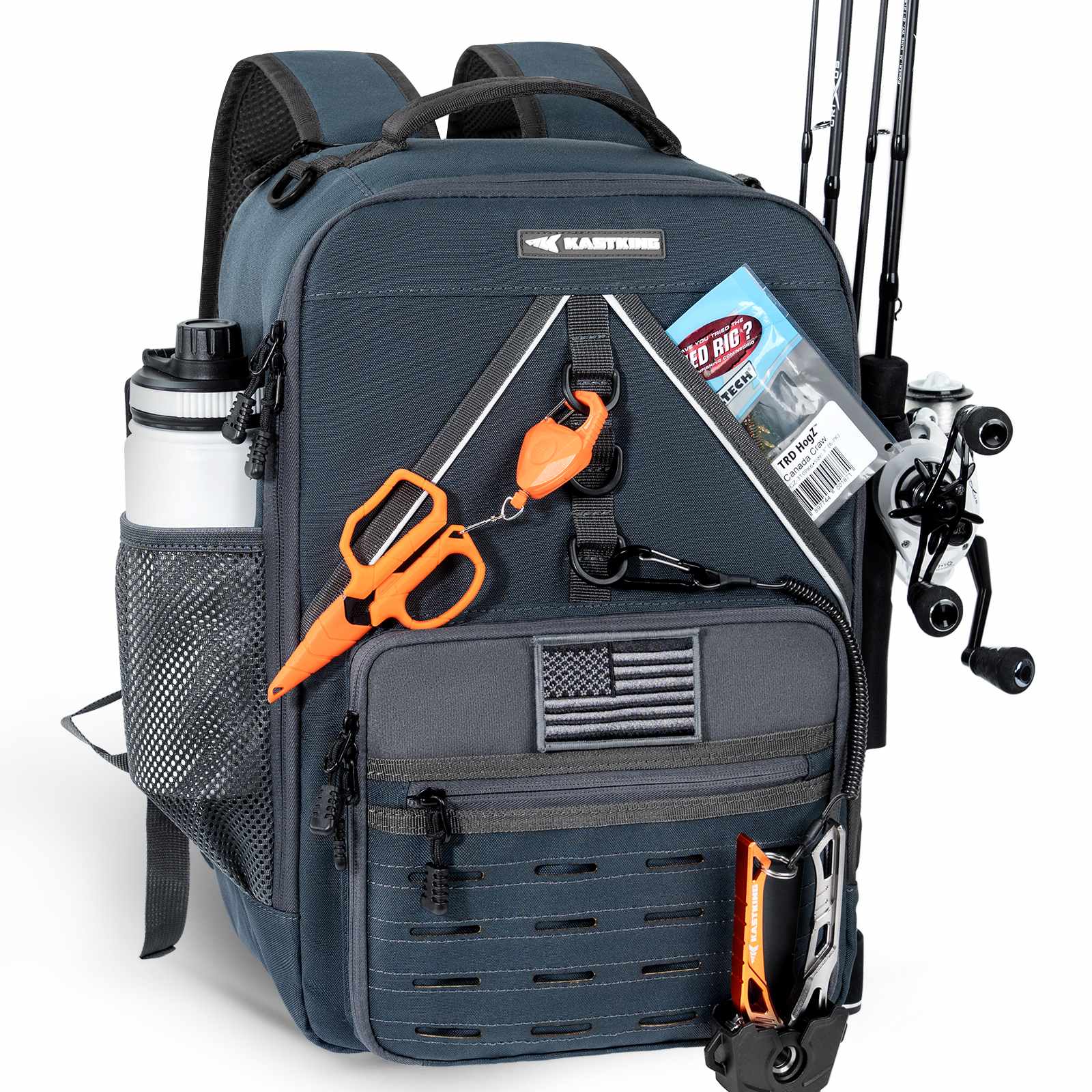 The KastKing KarryAll KastMate Fishing Tackle Backpack offers a smart multi-pocket layout to keep your gear organized.