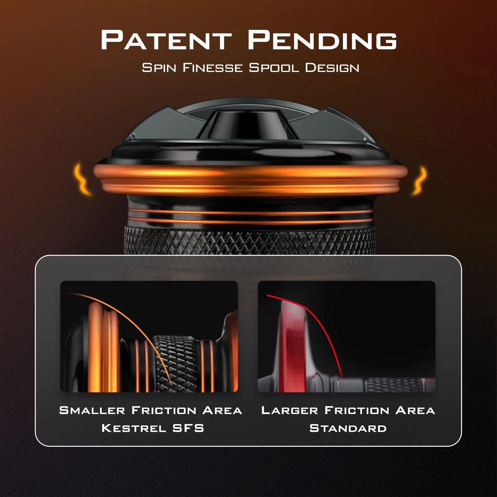 The Kestrel SFS (Spin Finesse System) spinning reel is amazingly light, weighing in at only 4.6 ounces. The full carbon fiber frame along with maximum use of 7075 & 6061 aluminum components keep the reel’s weight to the absolute minimum.