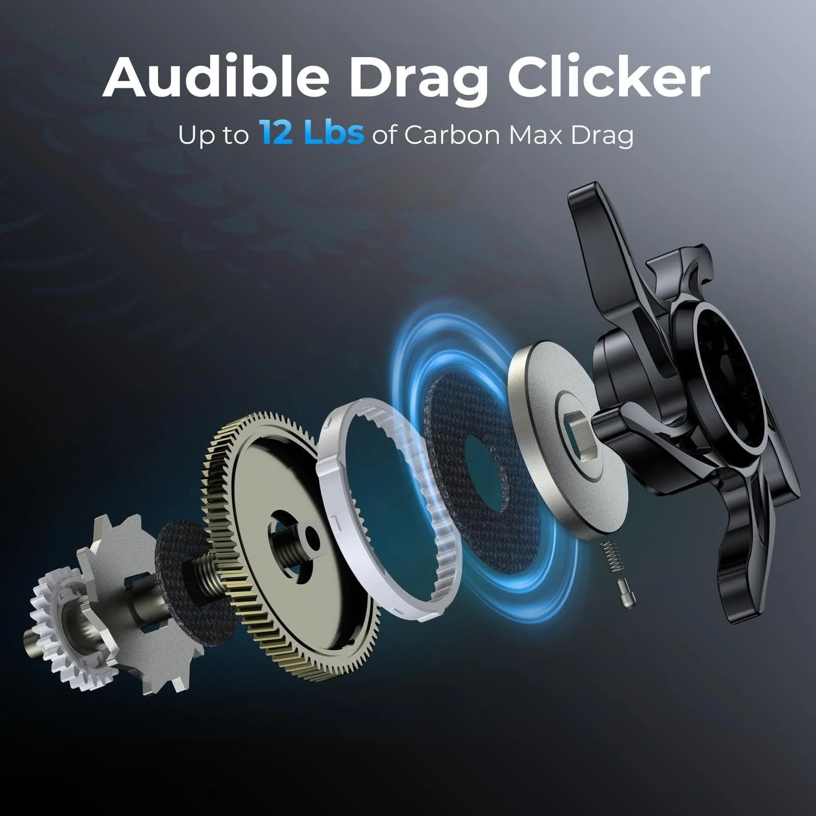 Experience up to 12 lbs of smooth drag that provides plenty of fish-stopping power and the audible drag clicker also gives you feedback.
