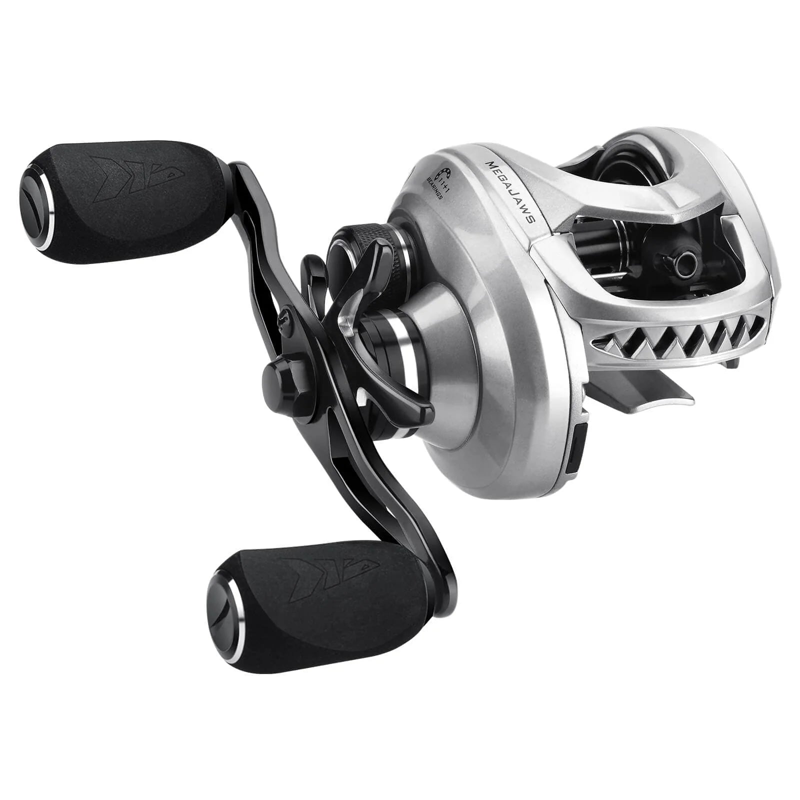 LIGHTWEIGHT DESIGN: Upgraded MegaJaws reels, adopting KastKing Palm Perfect ergonomic engineering, are only 41mm tall and much lighter than before. Fishing reel total weight was reduced from 7.6 oz to only 6.5 oz on the new model. Main gears and main gear shafts are made of hardened aerospace 7075 aluminum. Pinion gears are super hard manganese brass. Grips were changed from rubber cork to comfortable, lightweight EVA. The new MegaJaws lets you fish longer with less fatigue.