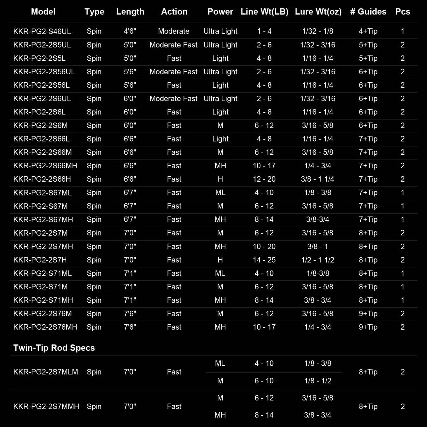 All Perigee II two-piece fishing rods are constructed with Toray 24-ton carbon matrix KastFlex blank technology for power, strength, and accuracy. Available in 42 sizes from an ultra light spinning fishing rod to a heavy 7’ spinning rod and a baitcaster rod ranging from medium to heavy power. Use them for bass fishing rods, trout fishing, walleye fishing, or as a salmon rod, catfish rod, steelhead rod, or saltwater fishing rod.