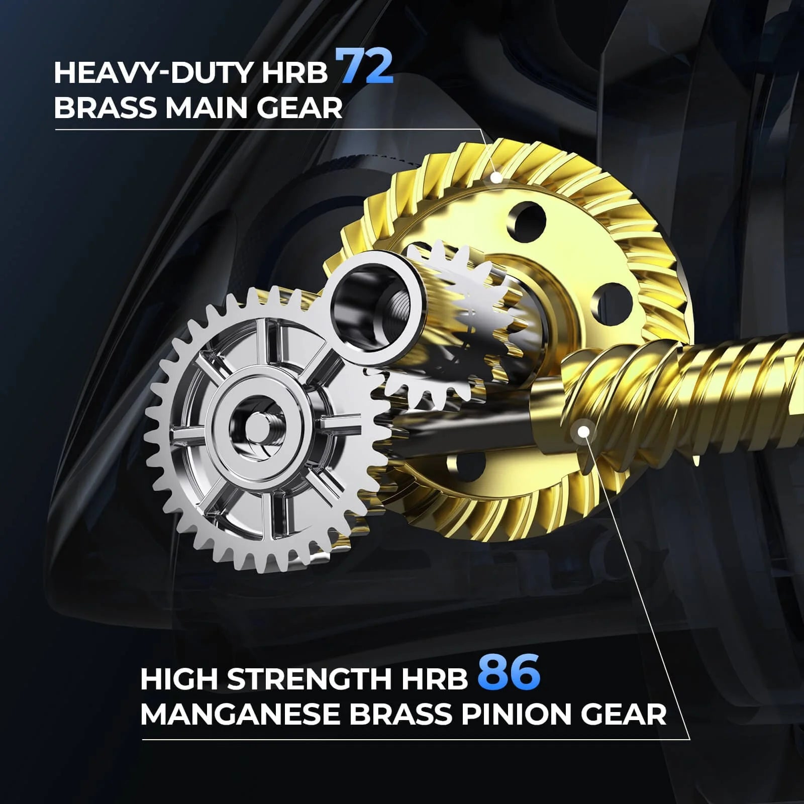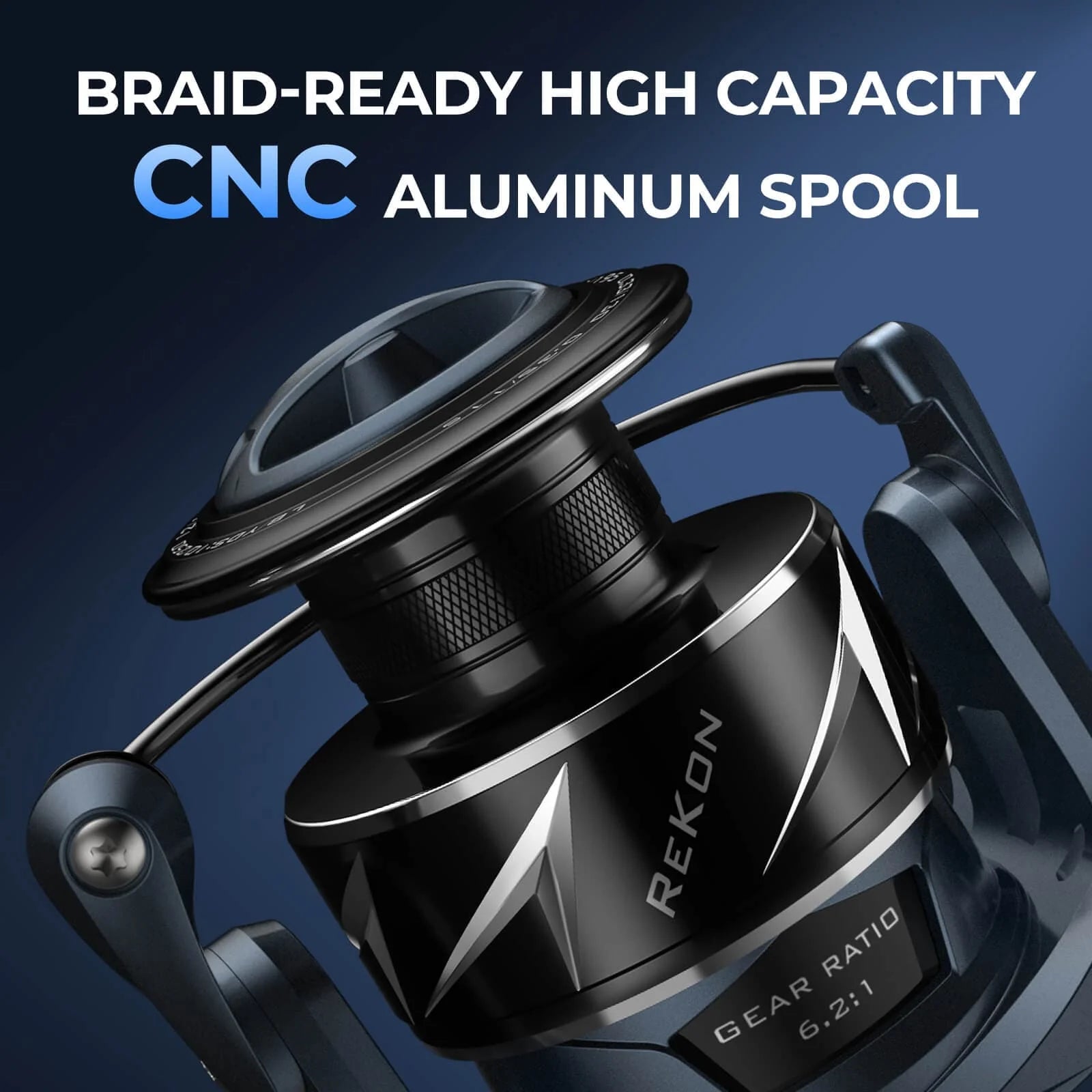 The ReKon saltwater fishing reel spinning is engineered to conquer challenging saltwater conditions. Experience the power of high strength (HRB86) pinion gear and CNC heavy-duty hardened brass main gear (HRB72). Combined with an extra-strong stainless steel main shaft, this reel delivers exceptional power in the toughest environment that anglers face.