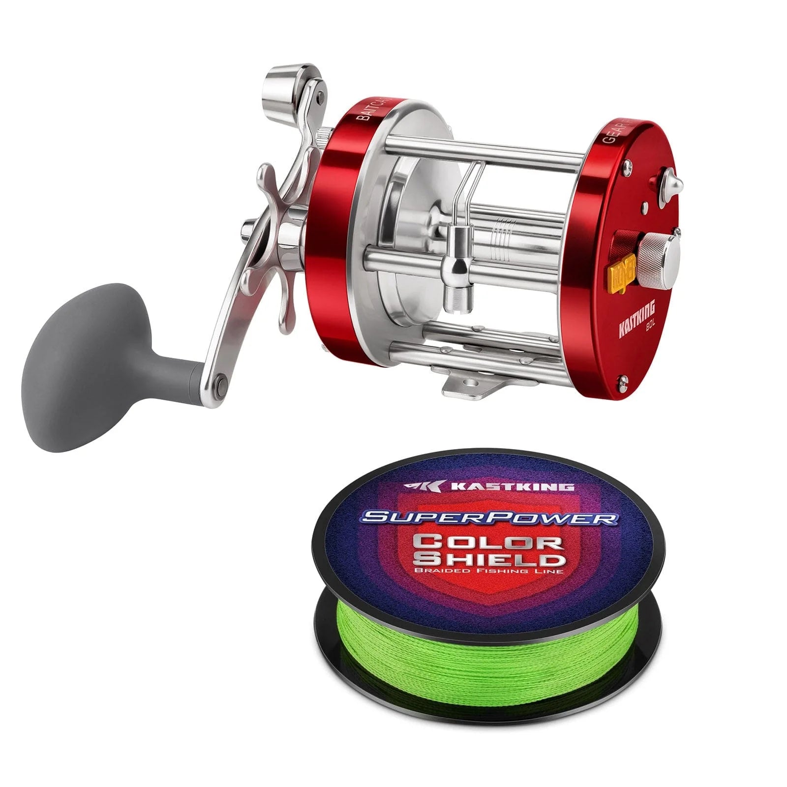 KastKing Rover Round Baitcasting Reel and SuperPower ColorShield Braided Fishing line (Random Color) Combo