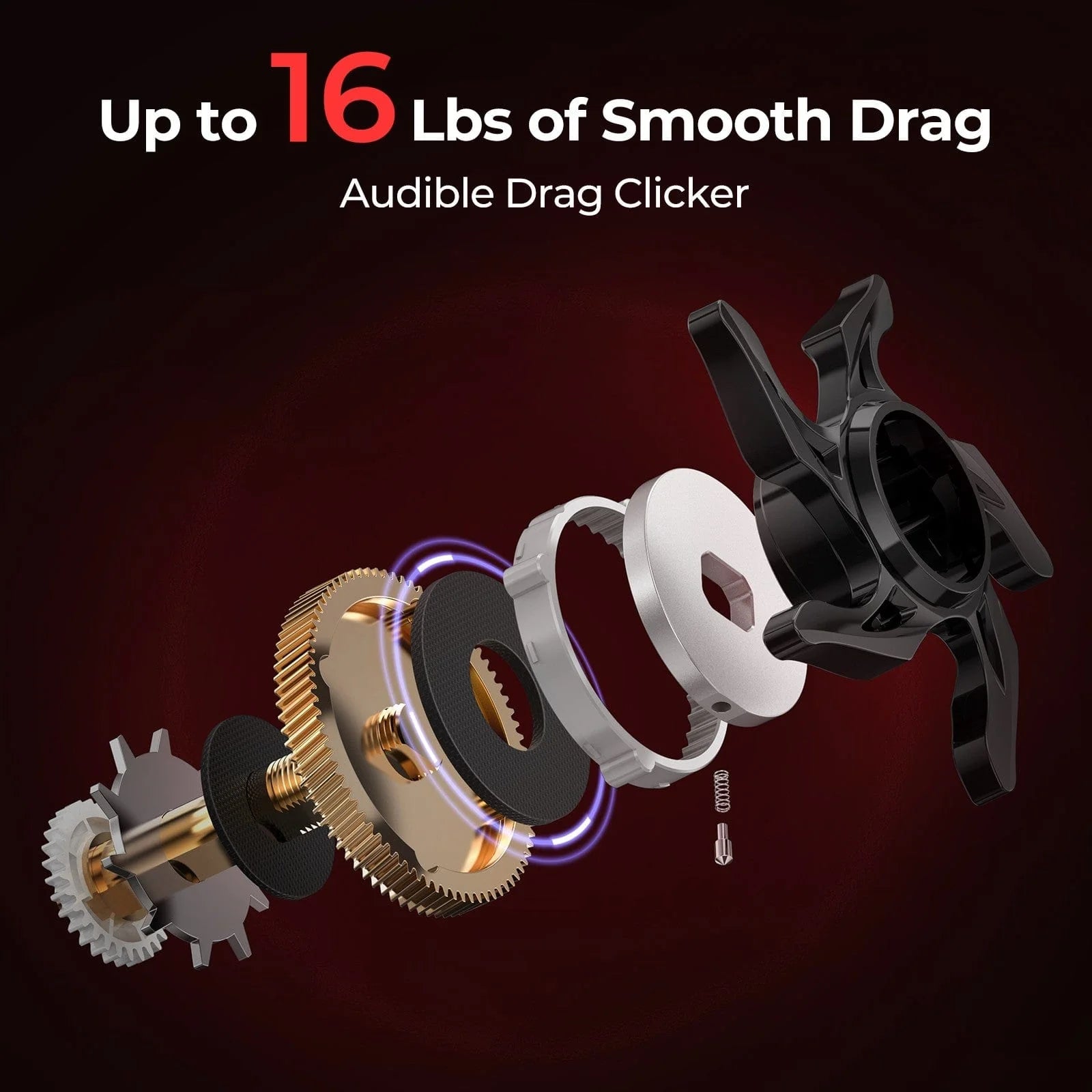 Experience up to 16 lbs of smooth drag that provides plenty of fish stopping power. The audible drag clicker gives you feedback.