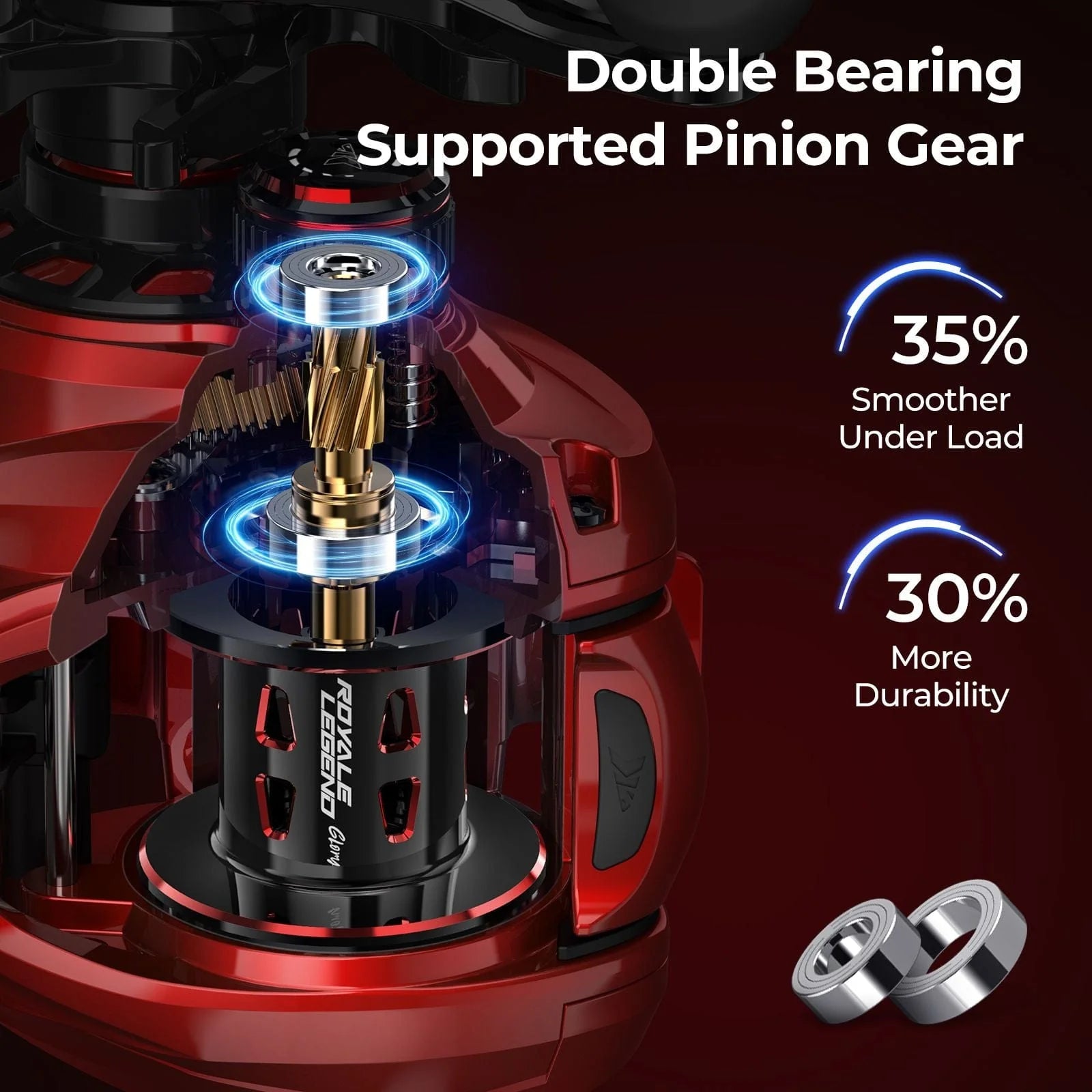 Inside this reel are 7+1 MaxiDur double-shielded stainless steel ball bearings to ensure ultra-smooth retrieves. The double bearing supported pinion gear elevates angling experience with 35% increase in smoothness under load and 30% boost in durability.