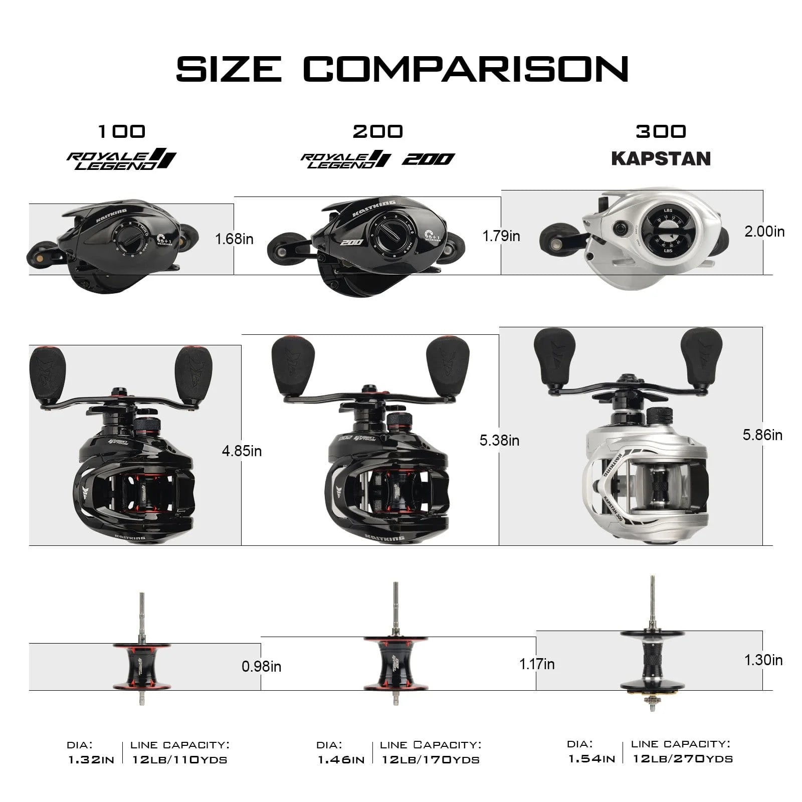 - LARGER HIGH-CAPACITY CASTING REEL - KastKing Royale Legend II 200 Baitcasting Reels feature a wider frame and larger capacity spool that holds up to 130 yards of 17 lb mono and deliver 22 lbs of drag. This fishing reel is perfect for large swimbaits, deep diving crankbaits, Muskie size lures, Catfish, Salmon/Steelhead and much more. Engineered as a fresh and saltwater fishing reel.