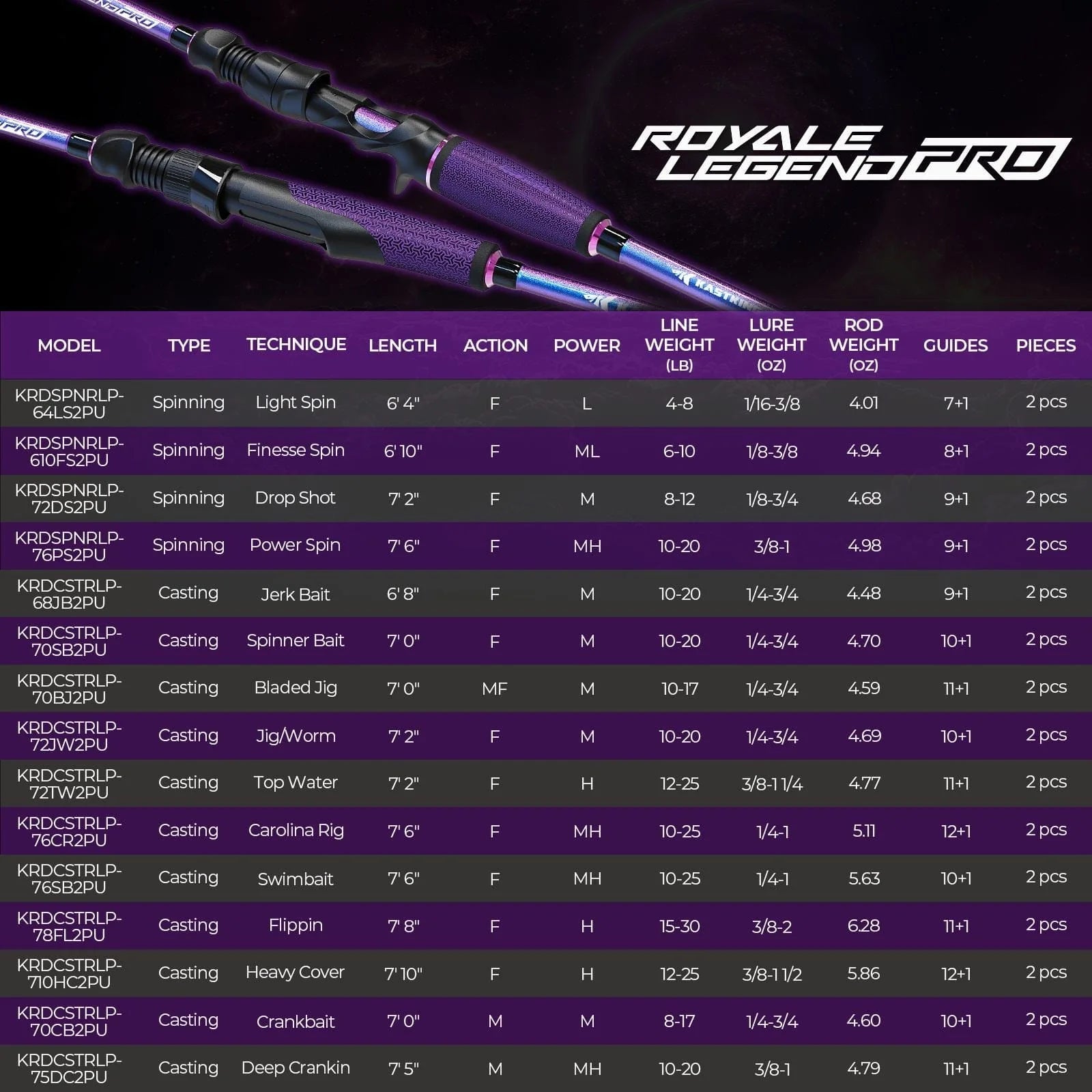 KastKing Royale Legend Pro Technique Bass Fishing Rods are designed to be the ultimate tool for that technique and are each named for those methods of fishing.