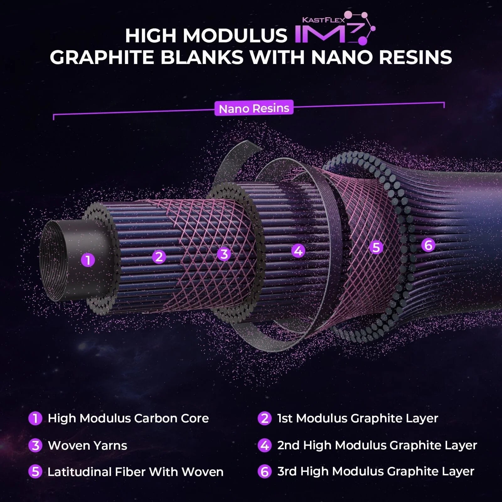 The KastKing Royale Legend Pro Bass Fishing Rods use High Modulus KastFlex IM7 graphite blanks rolled under extreme pressure with Nano resins to create extremely sensitive and light rod blanks, providing unmatched strength and sensitivity.