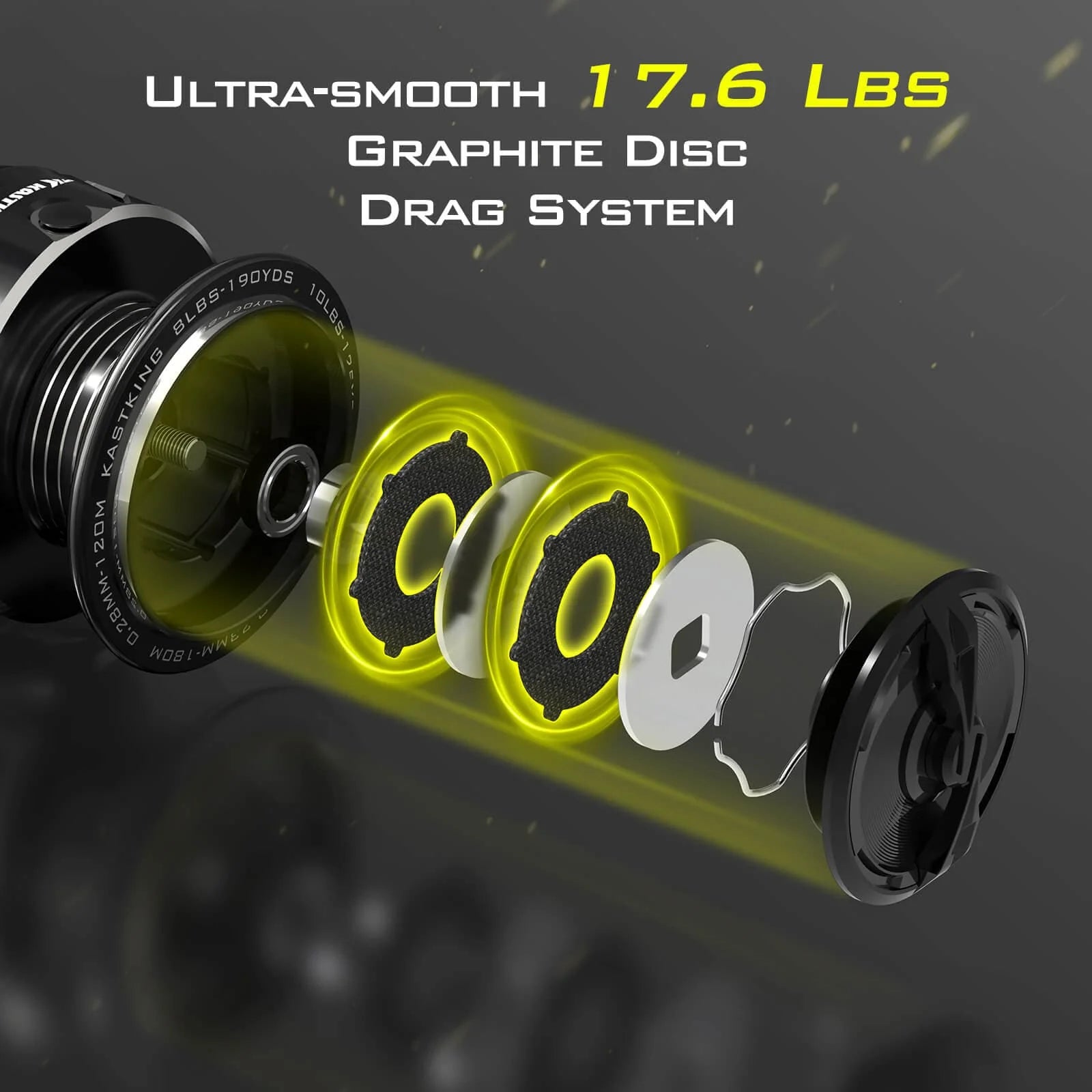 The comfortable TPE handle knobs are tremendously comfortable and provide anglers with a better grip and complete control. Meanwhile, the Icon Spinning Reel has 10+1 shielded stainless steel ball bearings provide a very smooth fishing experience.