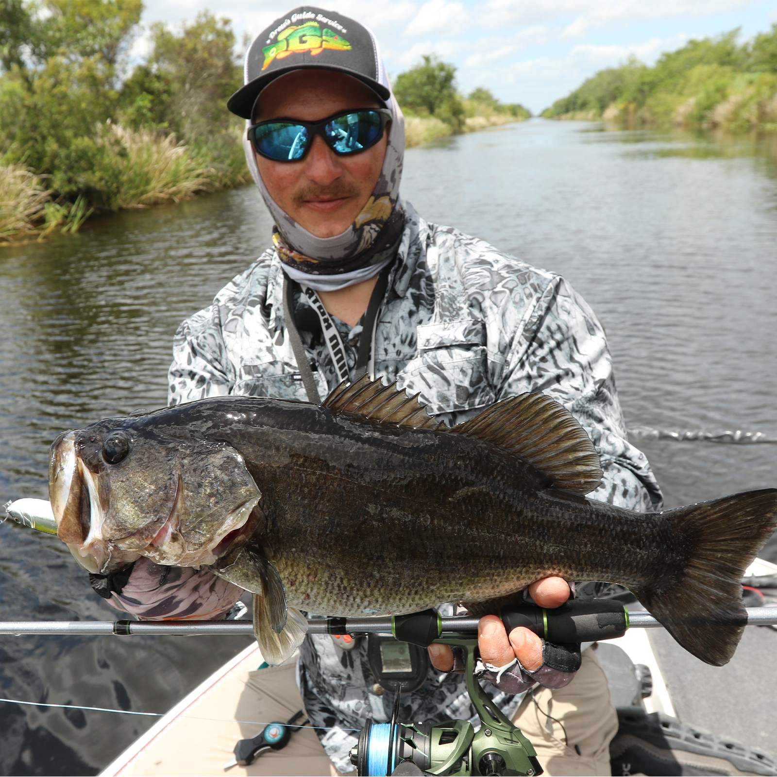 A triple disc carbon fiber drag system delivers up to 22 lbs of smooth, consistent stopping power. Perfect for light lines and hard-fighting fish.
