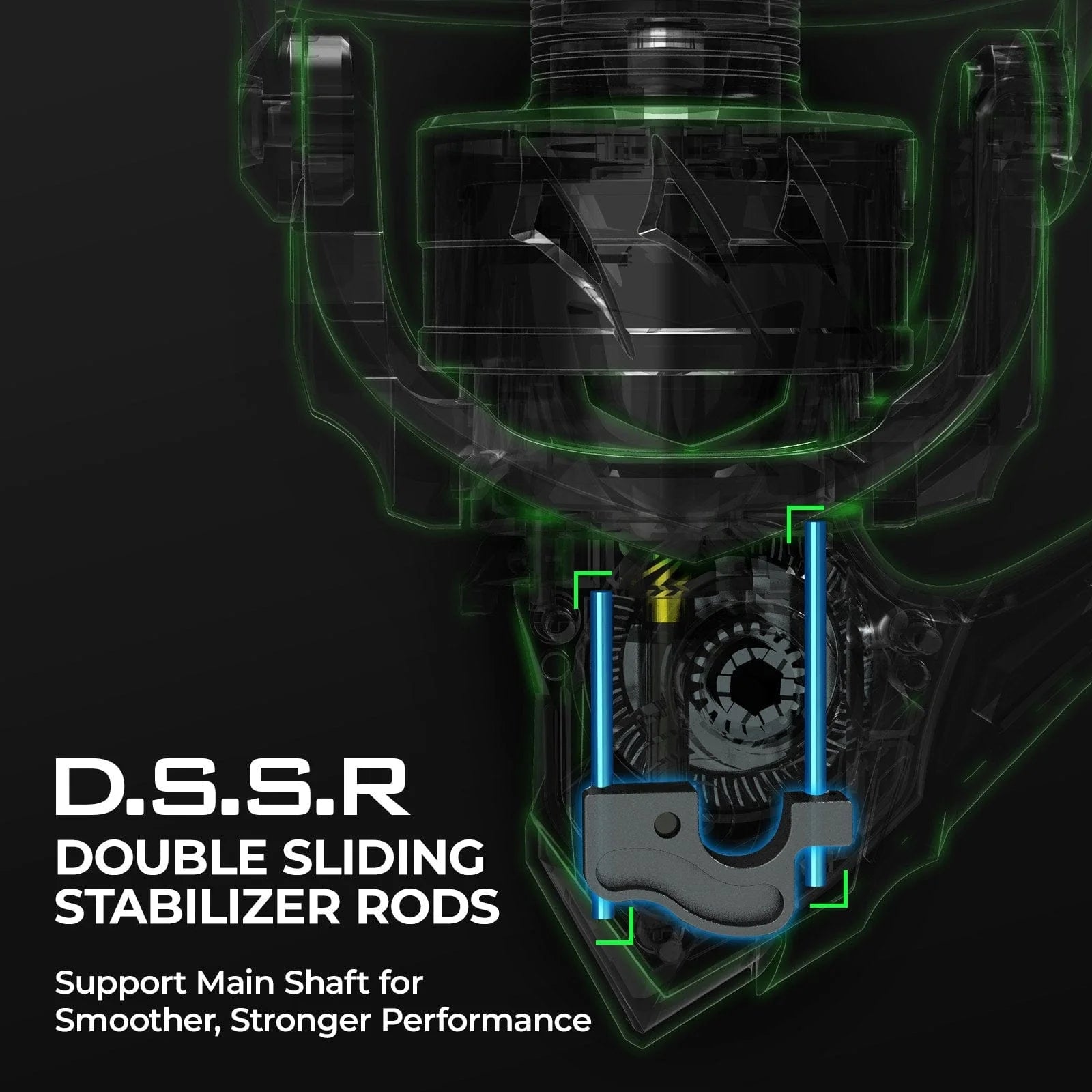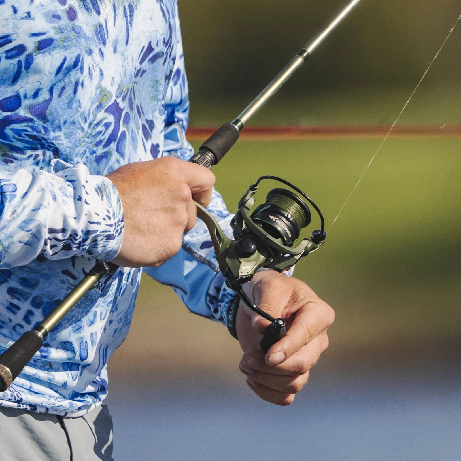 Precision Hamai-cut gears, 7+1 shielded stainless steel bearings, and a ceramic line roller ensure smooth, reliable performance. The bold Stryker Green finish and EVA handle make it stand out on any setup.