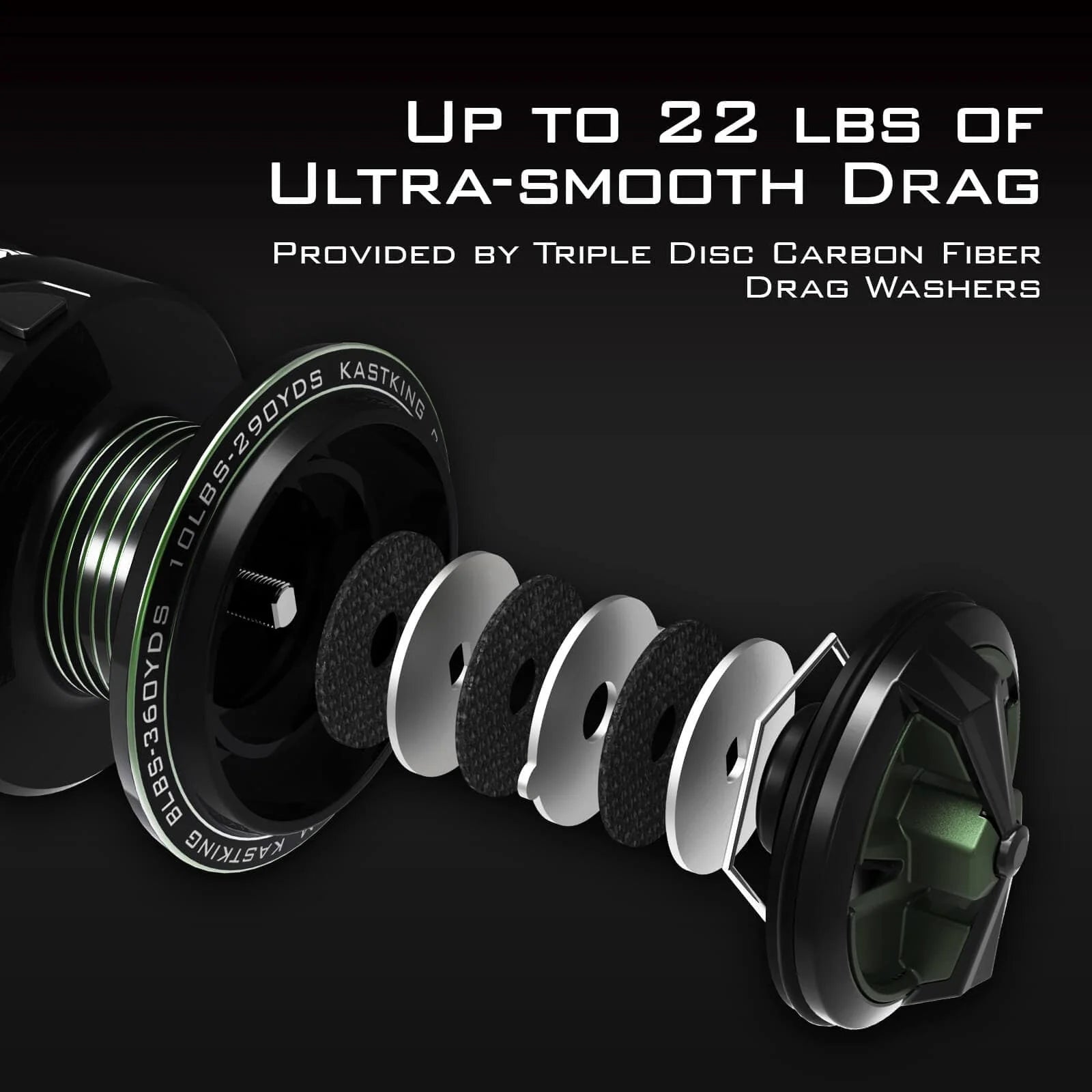 The KastKing Intrusion Shield System helps keep water and debris out of key reel components. This sealed design ensures smoother operation and longer reel life.