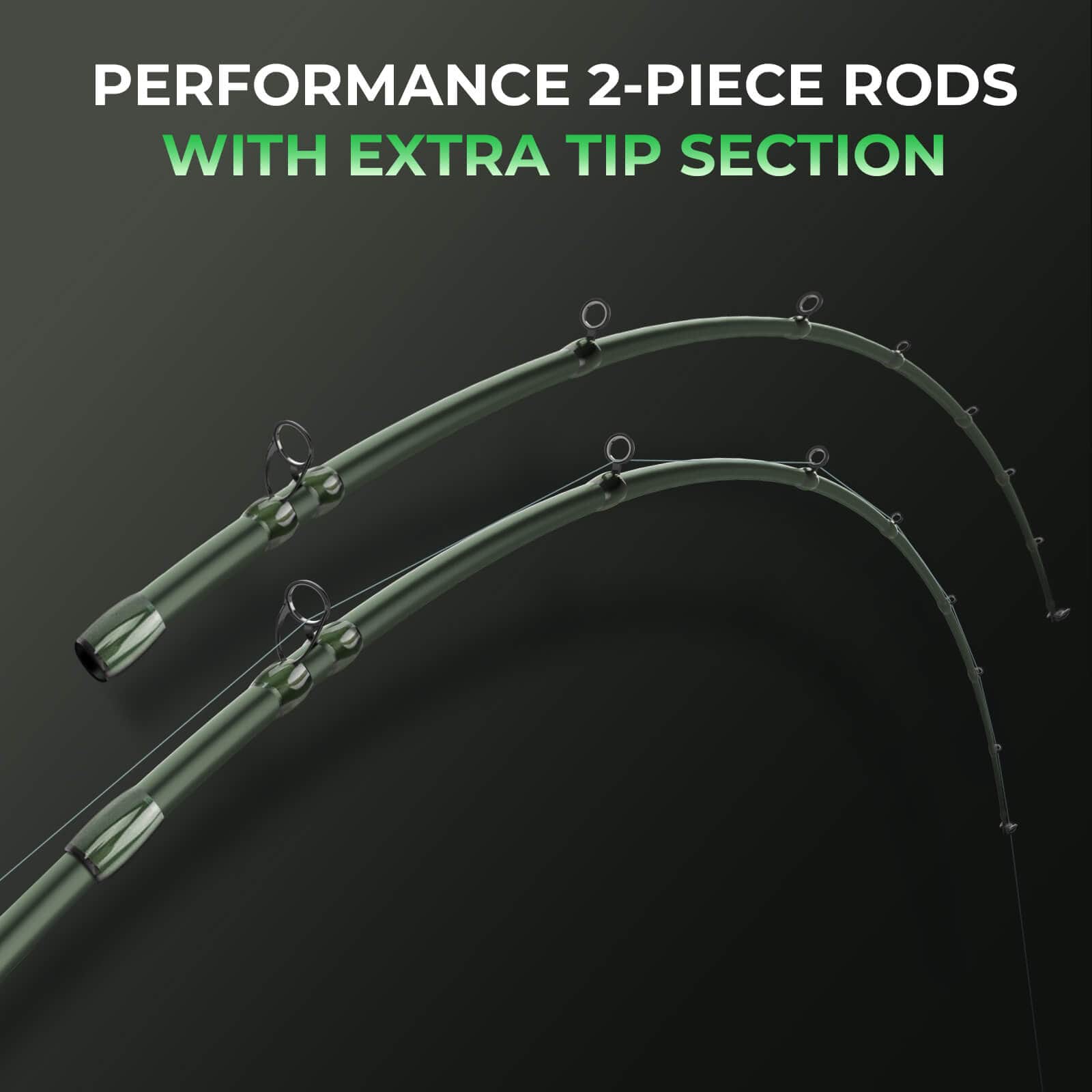 Each fishing combo features a 2-piece design and includes an additional tip section of the same action, providing anglers with backup and added reliability during their fishing trips.