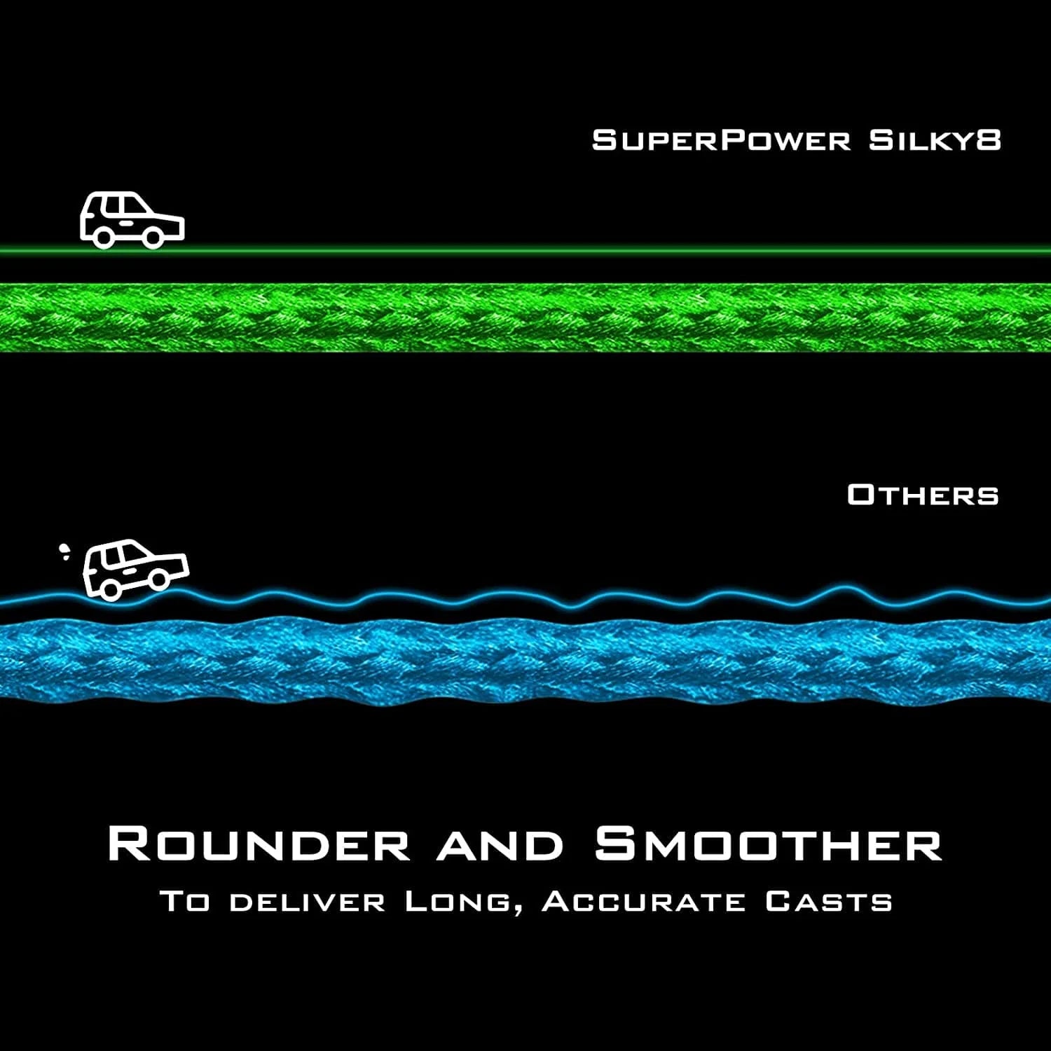 Round 8-Carrier Braided Fishing Line –SuperPower Silky8 braided fishing line is perfect for both spinning reel and casting reel applications. Soft and supple, Silky8 braided line will improve your casting distance and provide extra sensitivity.