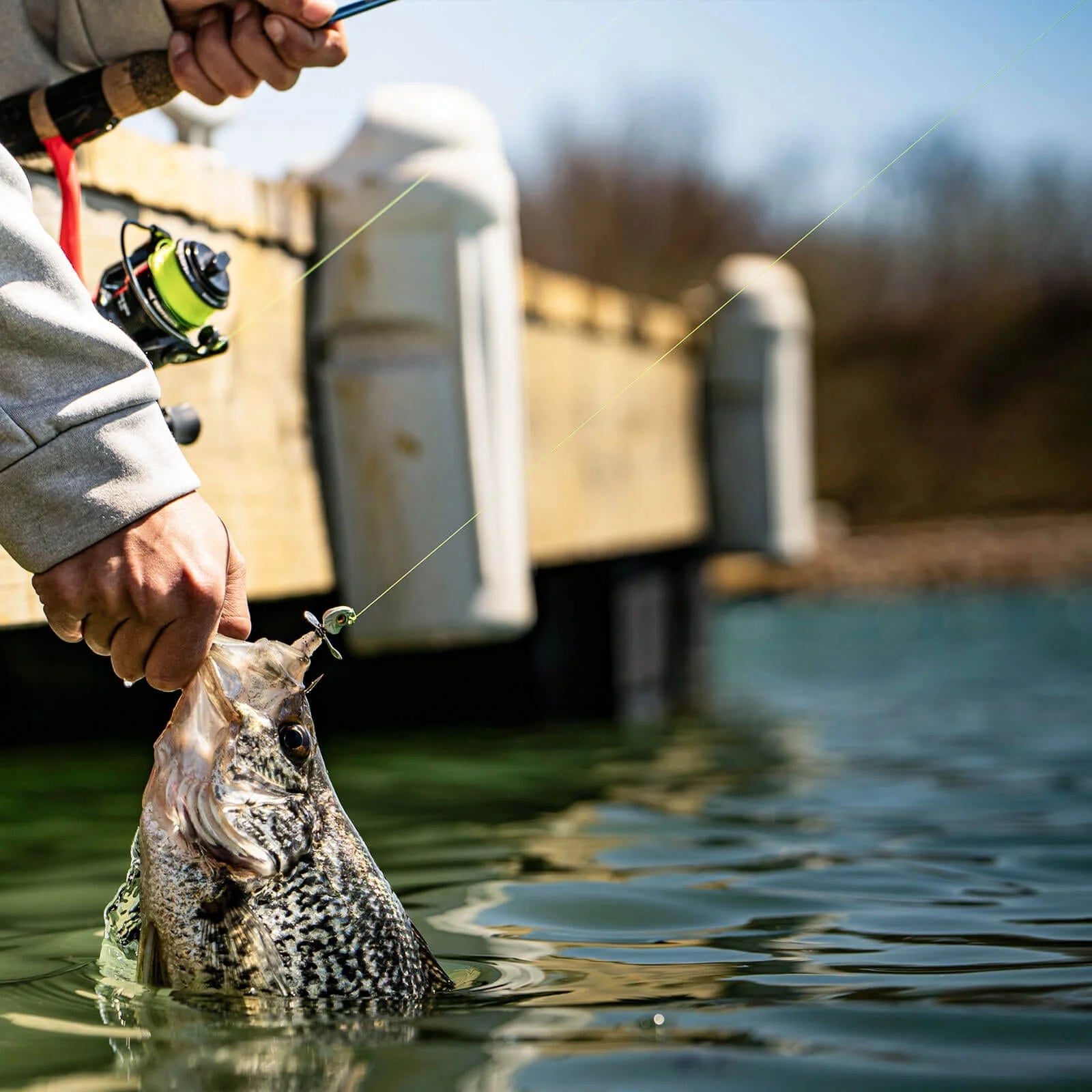 This mono fishing line uses 3-layers of 100% Nylon polymer to create low light refraction properties very similar to fluorocarbon. Low light refraction decreases the chances of crappie seeing the line underwater.