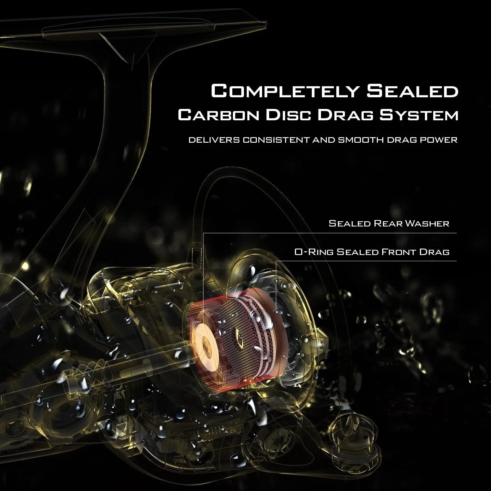 The sealed carbon drag system provides 22 LB of fighting power and keeps your drag washers dry to avoid inconsistent drag operation. For consistent performance KastKing uses a total of 7+1 MaxiDur shielded stainless steel ball bearings for remarkably smooth cranking retrieves.