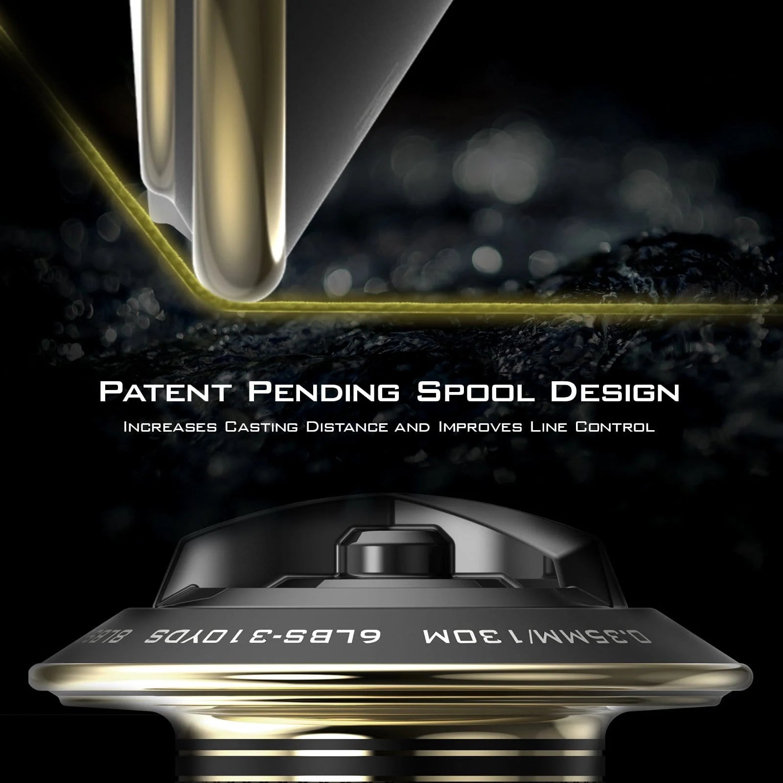The KastKing Emerald Eagle fishing reel has a Patent Pending spool designed to increase casting distance and improve line control. Plus, its braid line-ready spool doesn't need monofilament backing line before filling the reel with braided line to avoid slippage. The lightweight aluminum handle with EVA knob provides you with extra leverage and control. Fly like an eagle; a KastKing Valiant Eagle Gold spinning reel.