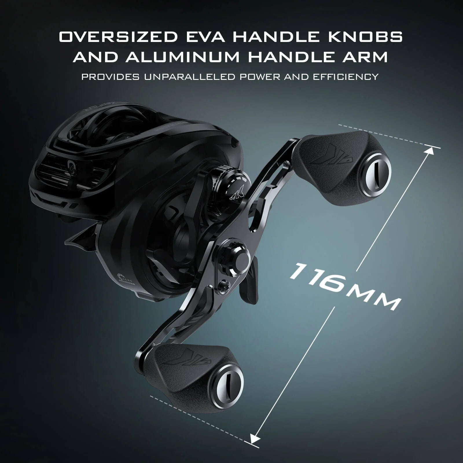 Zephyr baitcasting reels include the Halo XII magnetic braking system - KastKing’s latest release in braking innovation. Our engineers have crafted a total of 12 magnets into a one-piece, seamless ring braking system that provides smoother and longer casts. This design also offers enhanced stability and effectiveness in preventing backlashes.