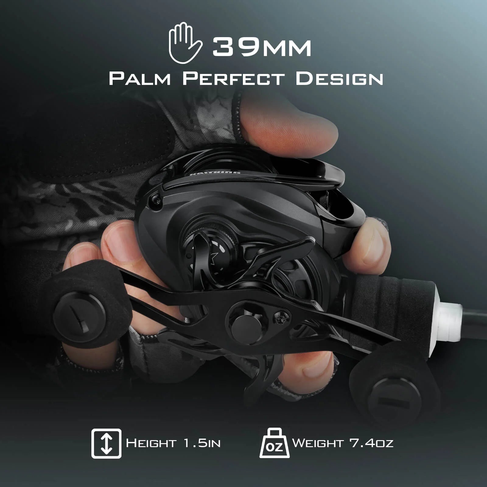 The oversized EVA handle knobs combined with the 116mm aluminum handle arm provide unparalleled power and efficiency to serious anglers. In addition, Zephyr baitcaster reel is only 7.4oz. and its compact Palm Perfect Design creates a body that is a mere 1.5 inches (39mm) in height, making the baitcsting reel very comfortable in the hands of any angler.