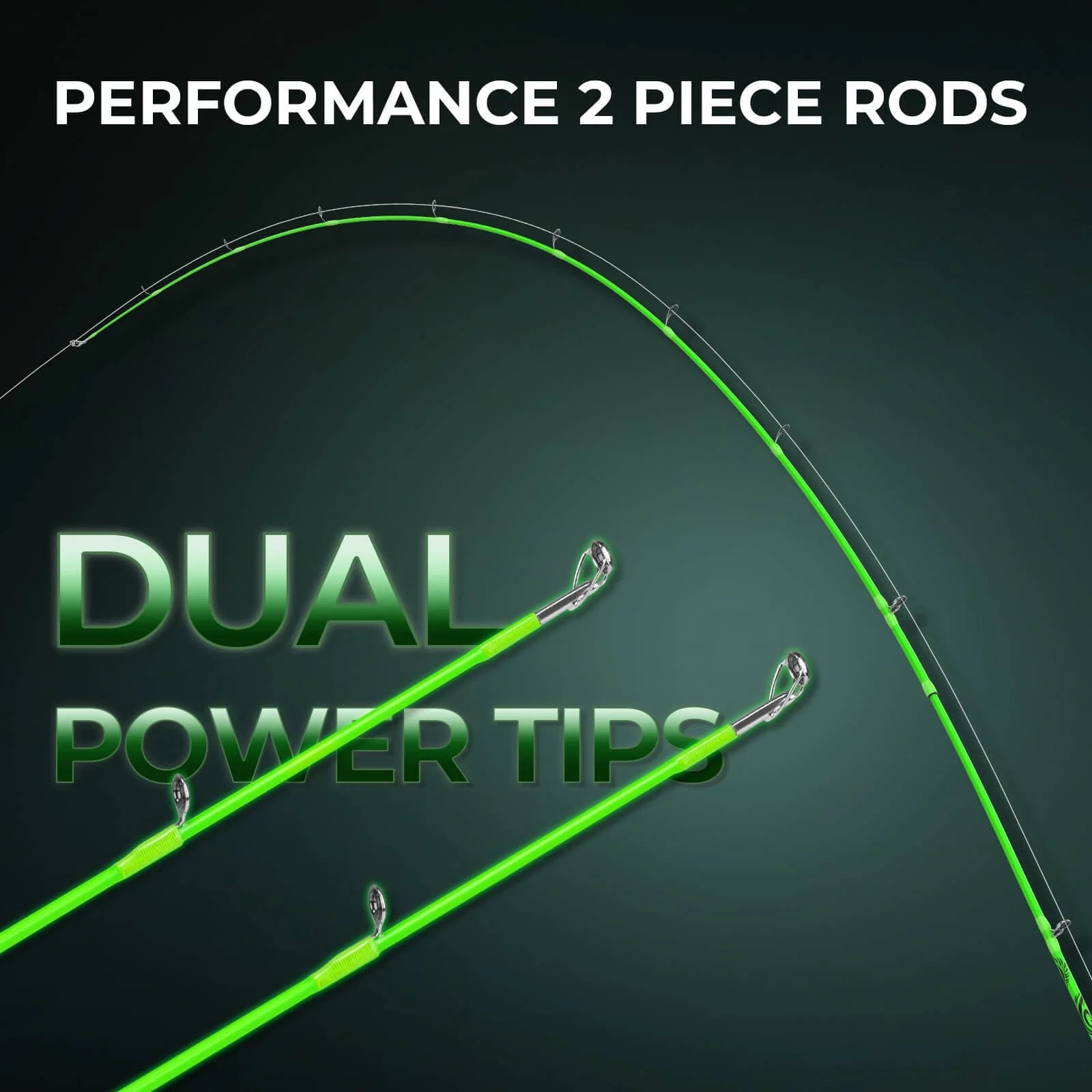 Each Zephyr Fishing Rod includes dual tip sections for different powers, ensuring uninterrupted fishing experiences by providing alternative power options if one tip is damaged or broken.