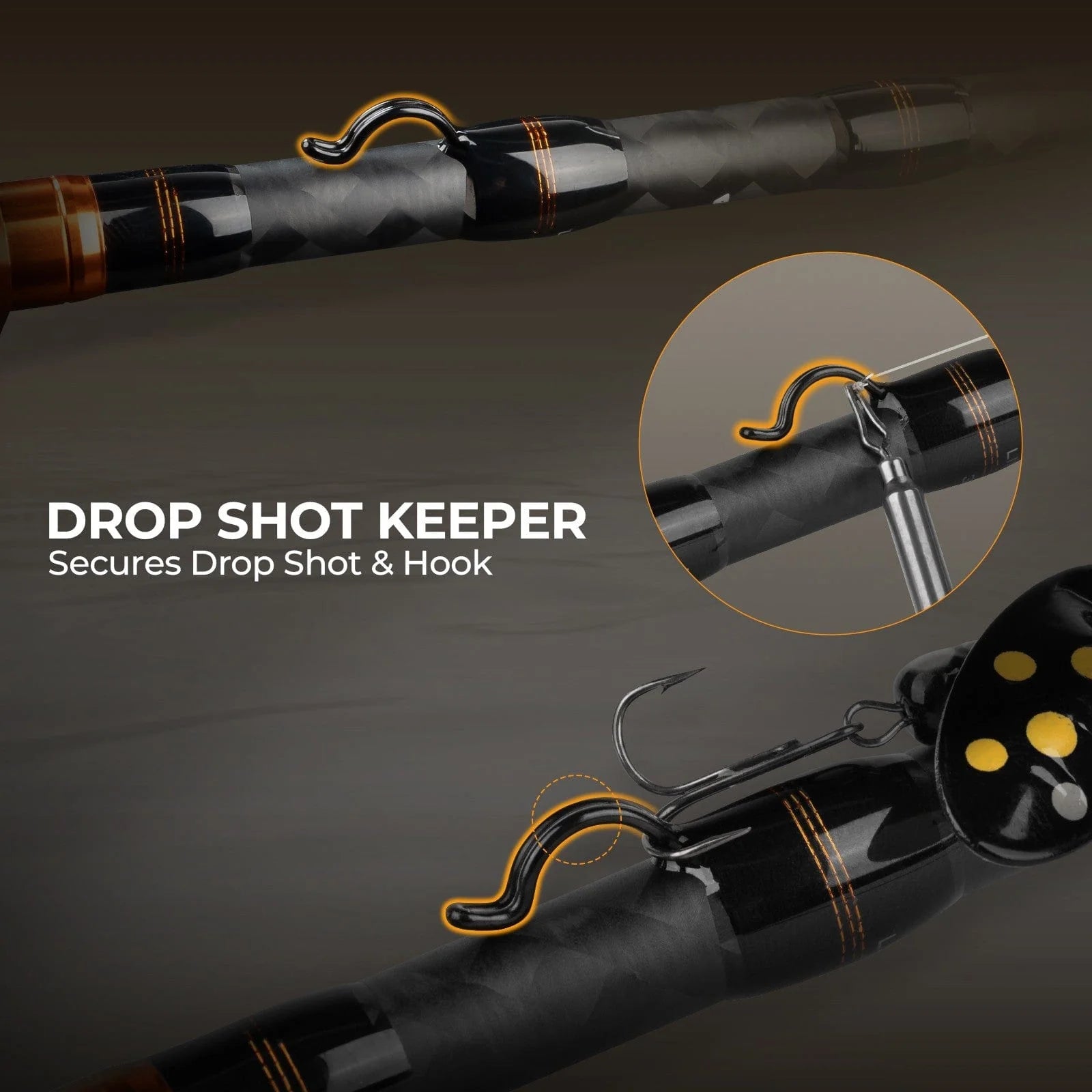 The KastKing Zephyr Spin Finesse Fishing Rod features a standard-style drop shot hook keeper, It is designed to keep your rig secure and tangle-free, ensuring your bait stays in place while you focus on fishing. The KastKing Zephyr Spin Finesse fishing Rod is equipped with alignment markers on the ferrules for quick and accurate assembly, eliminating the need for repeated adjustments.