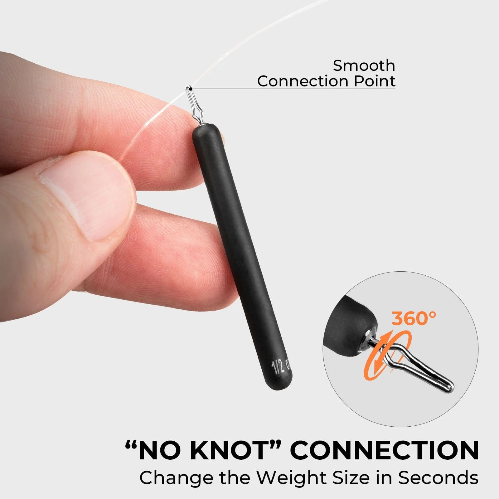 Manufactured with a quick connect adaptor, tungsten weights sinkers allows you to change the size of your weight in seconds eliminating the need to cut and retie. This design saves time when you need to adjust the distance between your weight and lure. The quick-connect adaptor also keeps you fishing longer.